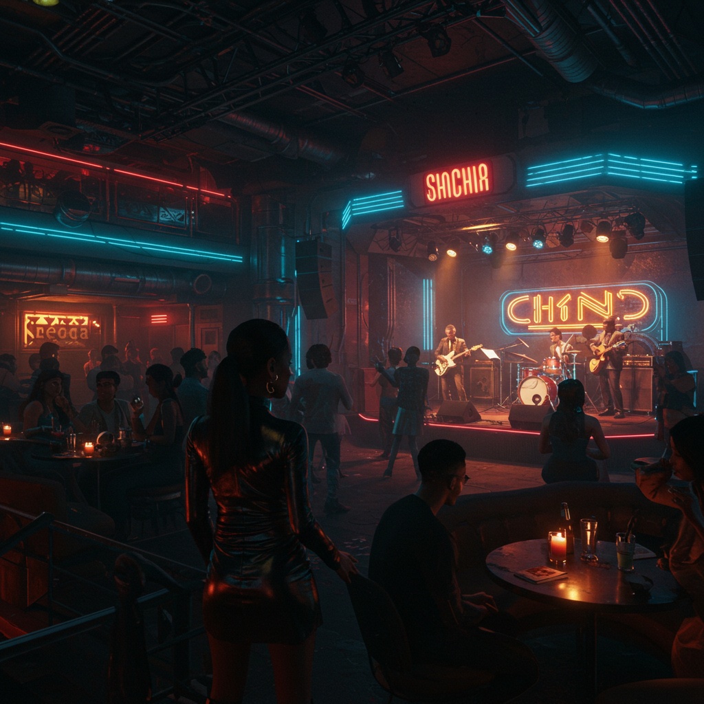 Neo-Jazz, Jazz, Modal Jazz, Free Jazz, Neo-soul, Conscious Rap, Jazz Hip-Hop, Modal Bebap, acid jazz, psychedelic, cyberpunk, IDM, Lo-Fi, Spacy, cool, Sweet, piano, saxophone, bass, drums, A scene of people enjoying a night cruise and leisurely gazing at the lively night view of the shore, Hip-hop jazz / cool & conscious vibe