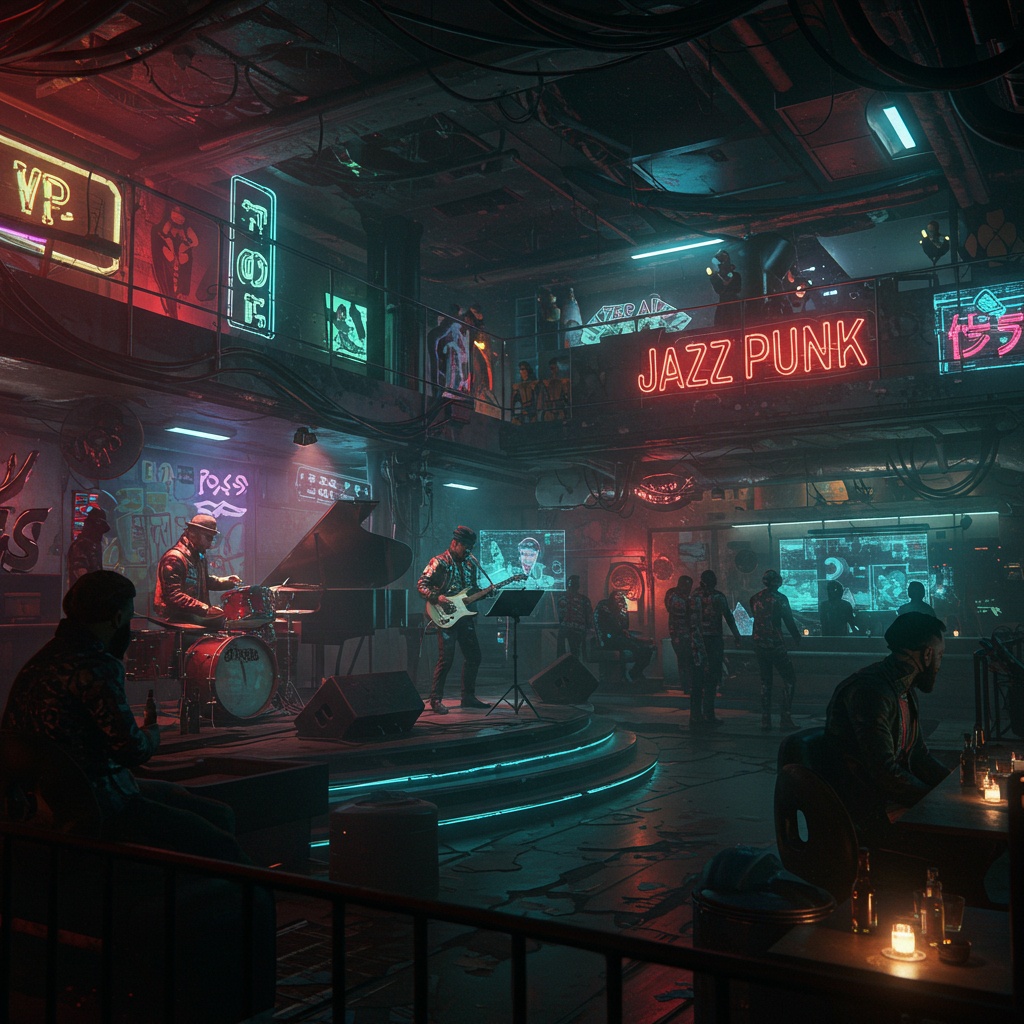 Jazz, Modal Jazz, Free Jazz, IDM, dubstep, dub, Ridder, acid jazz, aggressive, piano, saxophone, bass, drums, cool, Funk Jazz, Funk, Modal Bebap, Experimental, cyberpunk, psychedelic