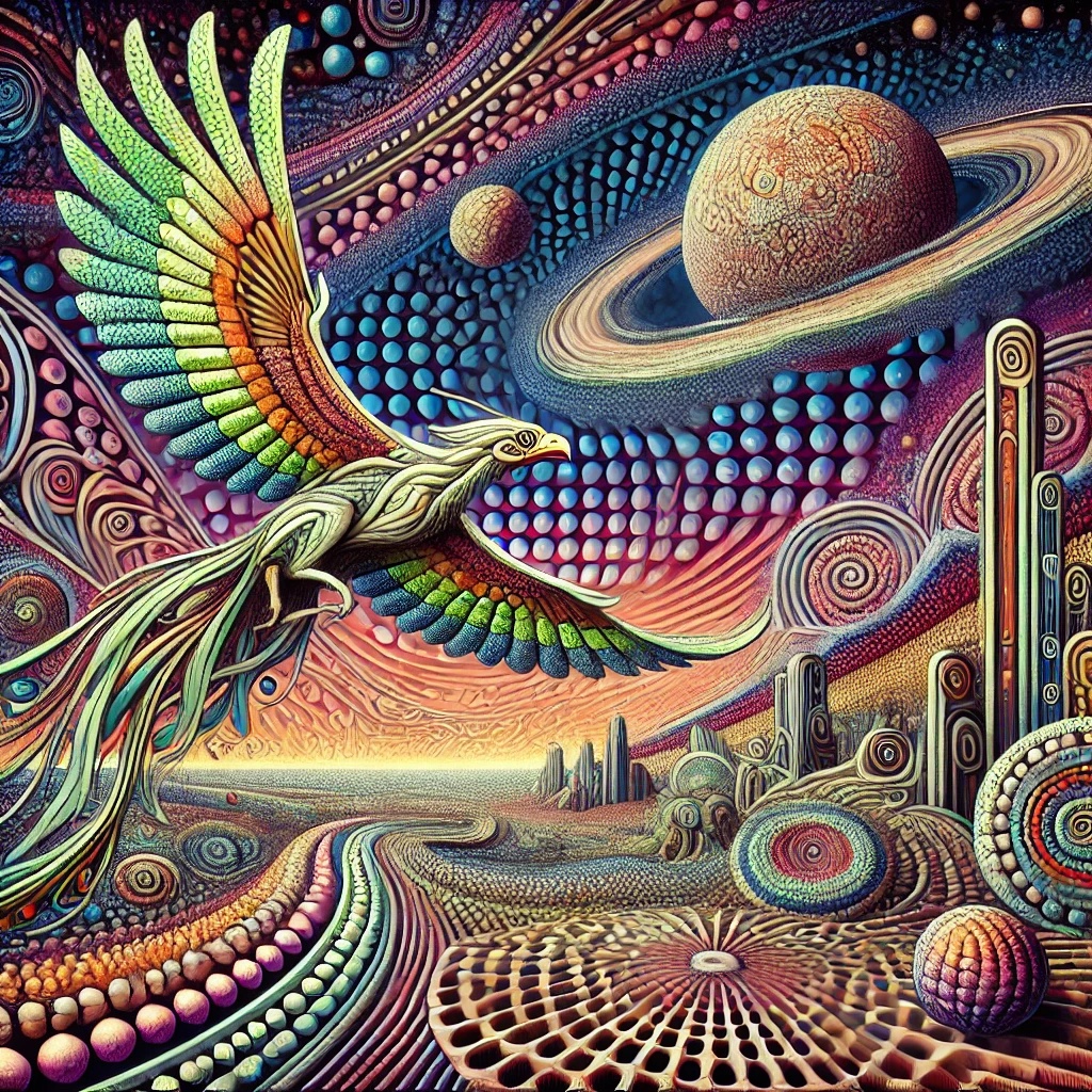 Steady hypnotic beat, layered looping, techno X jungle beat, occasional jazz drummer interlude, wall of sound, hi-fi, audiophile, subtle Chiptune funky licks, bird takes flight for 1st time melody