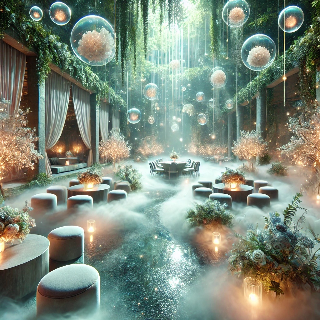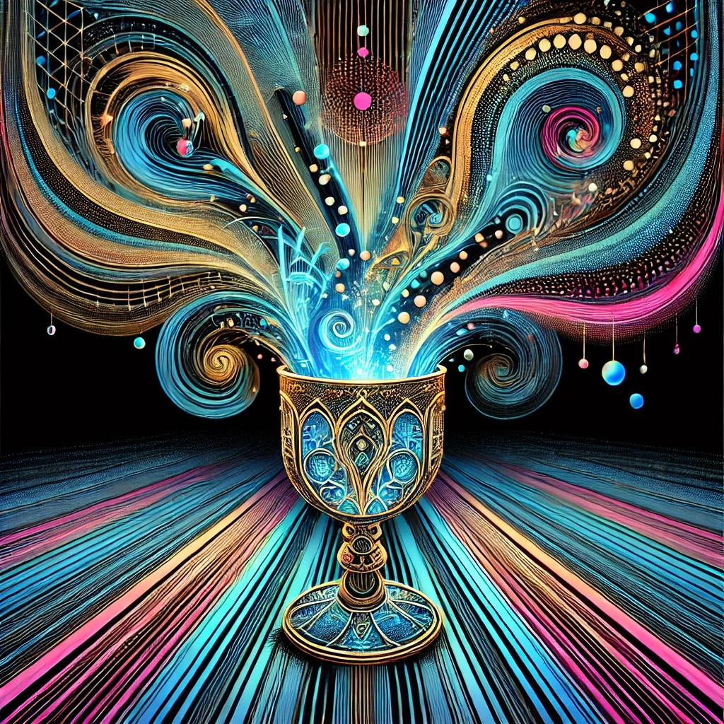 Techno X drum and bass beat, layered looping of multiple synth bass, subtle funky rhythm guitar, jazz piano, ethereal vibe with whimsical atmosphere, a suggestion of Chiptune minimal licks