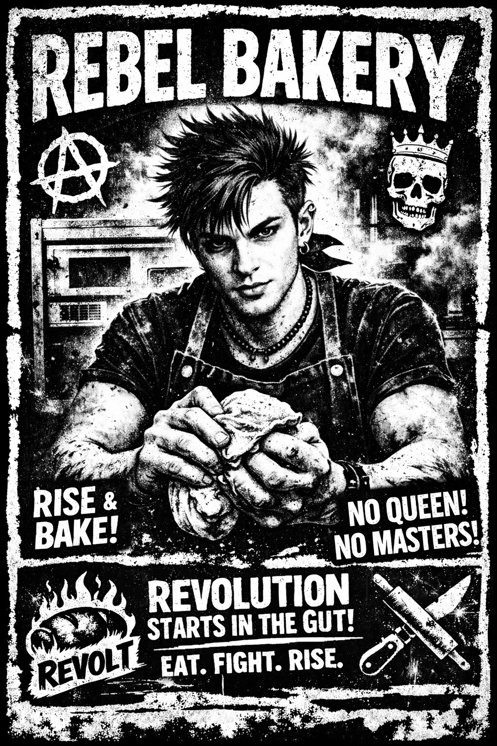 Raw, rebellious, energetic, But with warmth and humor underneath, Feels like a small underground bakery turned into a live punk gig