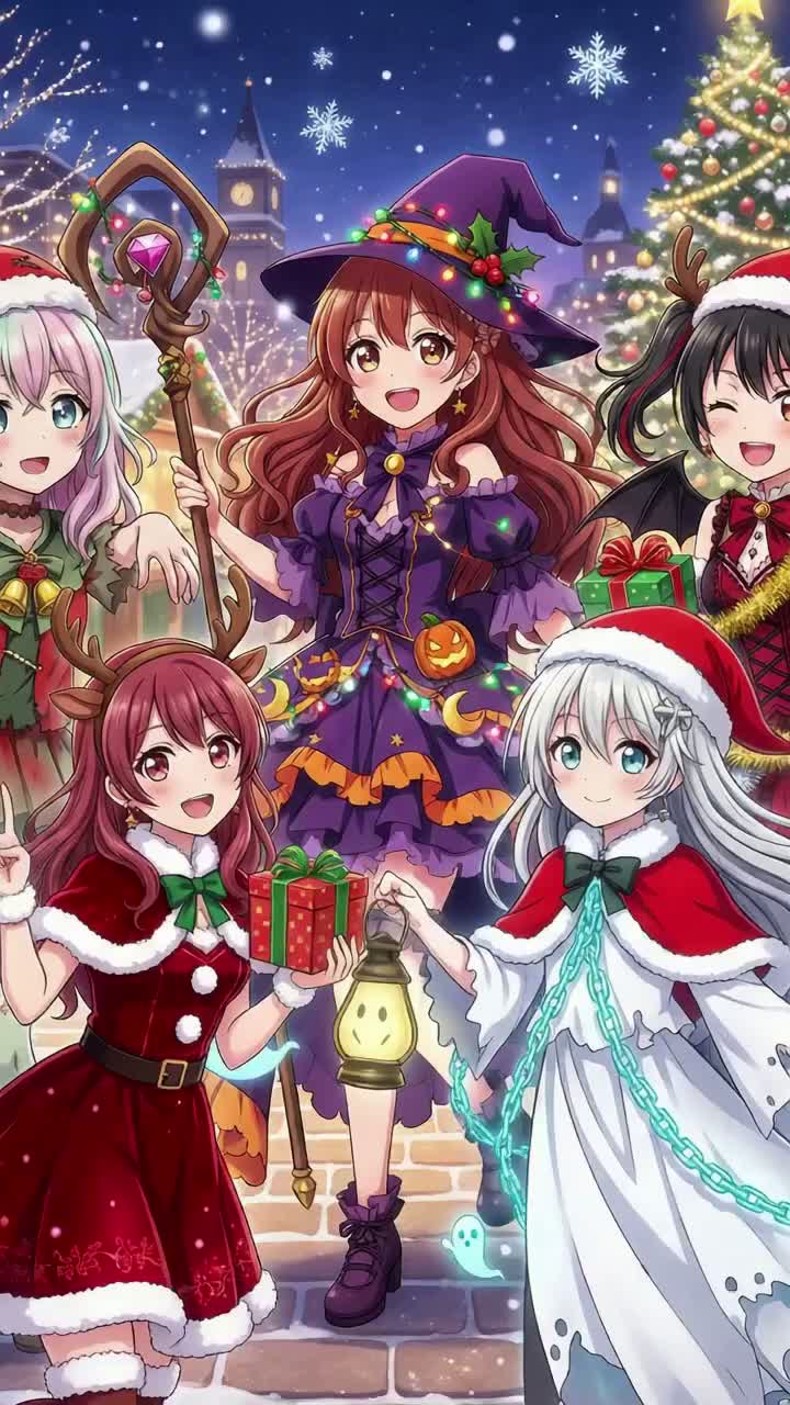 This J-POP idol track sprints at 130 BPM with infectious drive—glittery synths and twinkling keys intertwine over pop drums, bright glockenspiel, and jubilant sleigh bells, Five kawaii anime-style vocals trade playful call-and-responses and lush harmonies atop festive brass stabs for sparkle