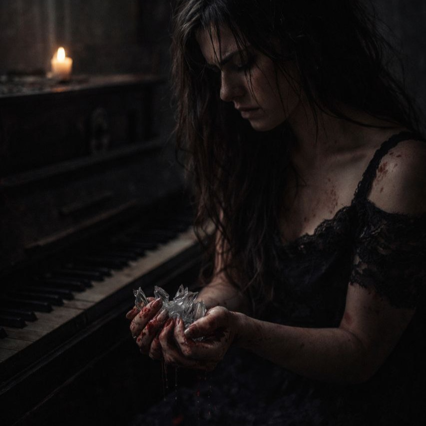 female Vocals, Character: A man haunted by a love he can't escape, His pain is quiet, obsessive, and turns into raw, screaming desperation, He's trapped in memories, Sound & Vibe: Starts as a sparse, haunting piano ballad, Builds into a dark, cinematic explosion with strings, synths, and crashing drums, Think: the melancholy of Radiohead's "Videotape" meets the explosive anguish of Bring Me The Horizon's ballads, Vocal Journey: Intimate whispers → strained, emotional singing → raw, screaming climax → broken whisper outro