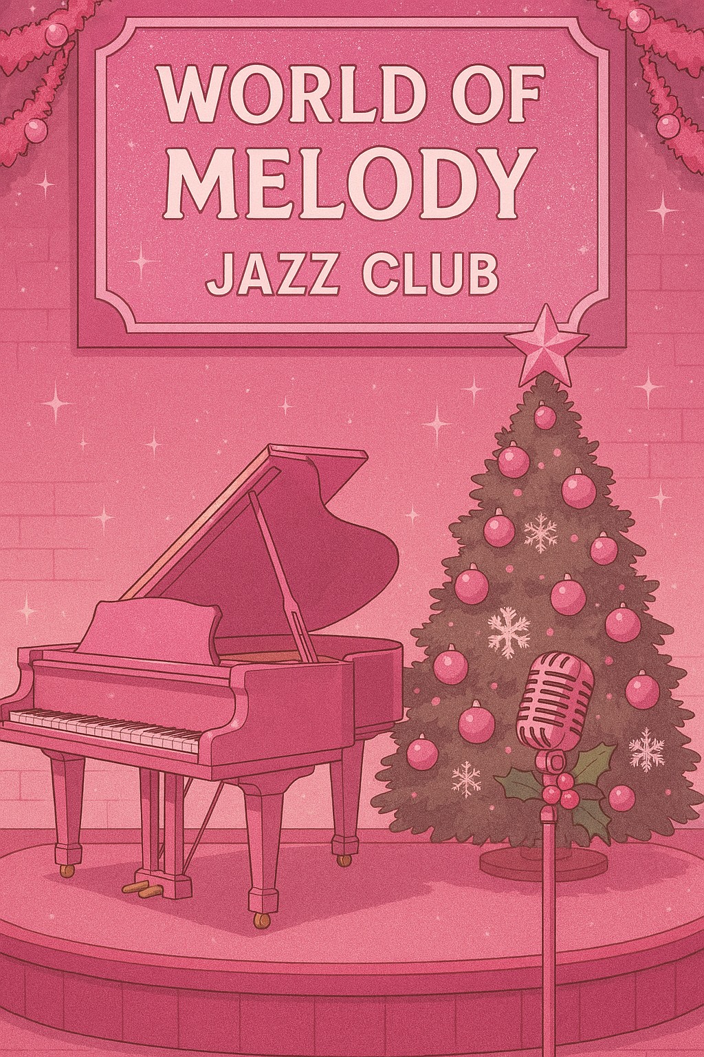 Elegant Christmas jazzâpop instrumental with glamorous holiday sparkle & Pink Devil fantasy energy, Playful, sultry, luxurious mood, A snow-globe dreamscape meets jazzy cabaret Christmas lounge with anime magical-girl winter orchestration, Warm jazz piano; upright bass softly; brushed drums; sleigh bells; glockenspiel; celesta; Christmas bell chimes; shimmering twinkle FX; magic sparkle FX; soft vinyl crackle; gentle winter wind ambience; snow-fall shimmer, Harp arpeggios, pizzicato strings, light legato violin lines, cello warmth, soft holiday chords, Occasional clean electric guitar with subtle chorus shimmer for holiday pop-rock texture, Bright, merry, cinematic, whimsical, & sophisticated, Cozy winter vibes mixed with classical Christmas orchestral charm, Balanced blend of Christmascore, holiday jazz, classical winter symphonics, lounge pop, and anime OST sparkle, Immersive mix with stereo wideness, Dolby Atmos-like depth, atmospheric, soft warm nostalgic tone, Playful rhythm