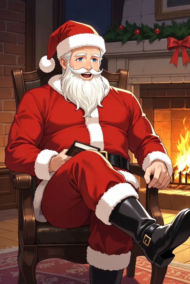Single male Santa Claus narrator, warm, deep, and jovial baritone