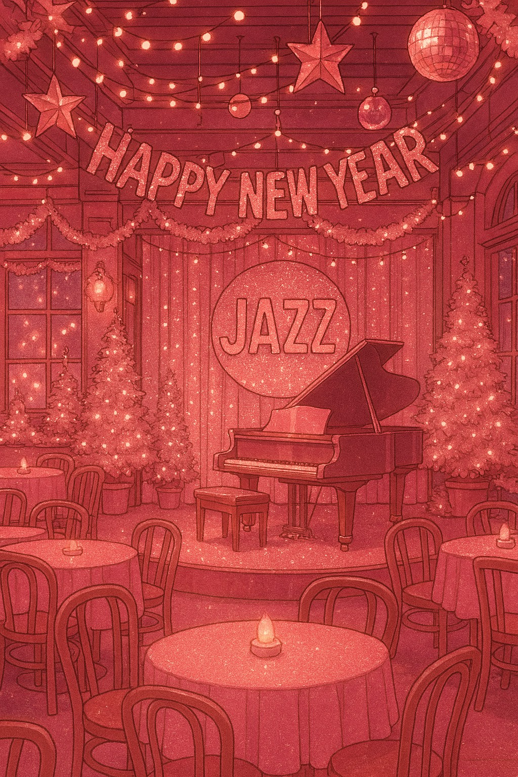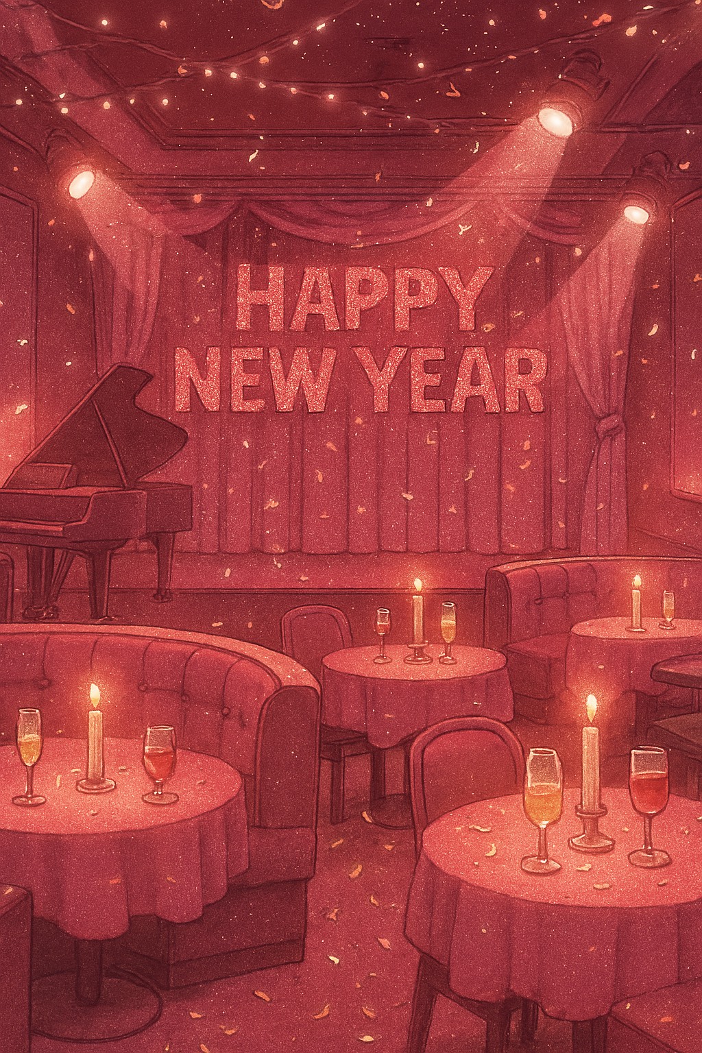 Slow, dreamy, time feels soft, Adult contemporary jazz lounge vibe, but adds tinsel, fading carols, leftover champagne, and that quiet, seductive pause before the clock resets, Smoky adult contemporary jazz, late-night lounge, Brushed drums, upright bass, piano, muted trumpet, Sultry, intimate vocal â slow swing, Holiday remnants, New Year anticipation, Sultry, intimate female vocal with a confident, seductive tone (Pink Devil energy), Slow swing tempo (~70 BPM), brushed drums, upright bass, warm piano, muted trumpet, soft vibraphone, Atmosphere is late-night, cozy, and reflective â dim lights, clinking glasses, murmuring crowd, Subtle holiday motif riffs only: faint sleigh-bell shimmer, implied Christmas chord fragments and intervals that never fully resolve, ghostlike echoes of carols woven into jazz harmonies (never bright or festive), Mood is in-between, nostalgic, sensual, and slightly dangerous â Natural dynamics, live-band feel, close-mic vocals, intimate club mix