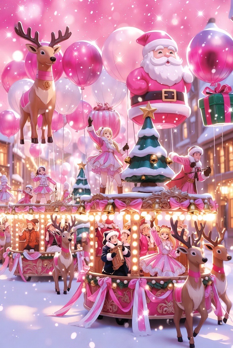 Sunoâs Dreamland Thanksgiving Parade Song â magical, mischievous, emotional, theatrical, Theatrical Pop, Parade Score, Ethereal Pop, Dark Pop, Holiday Fusion, Big theatrical pop mixed with parade music, ethereal pop, dark pop, hyper-cinematic Broadway energy, and holiday fusion, Bright, sparkly, magical, grand, live-parade atmosphere with marching band elements and fantasy orchestral layers, Blend dreamy, angelic textures for Erica Heaven with bold, mischievous, dramatic textures for Pink Devil, Include live parade ambience: cheering crowds, distant marching drums, glitter FX, sleigh bells, and float sparkles, Huge holiday parade energy blended with fantasy pop, Marching band, Enhanced Audio Mastered, Studio Quality, Dolby Atmos, Stereo Widened Soundstage, THX, Immersive Feel, Cinematic, Dramatic