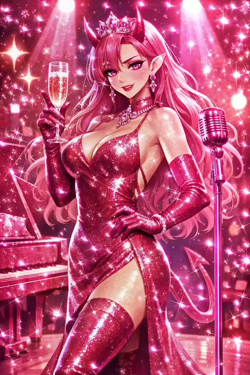 Satirical song Pink Devilâs voice, with her ego, seduction, mischief, glitz, girl-boss energy, Harmonies, FX cues, and the full Pink Devil Christmas-diva attitude, Christmas Jazz ⢠Holiday Pop ⢠Lounge Pop ⢠Cabaret Pop ⢠Holiday Contemporary, classic Christmas orchestral + anime magical-girl winter OST, Christmas jazz, upright bass walking, brushed drums, soft rim clicks, celesta, glockenspiel, sleigh bells, Christmas bells, bell chimes, glimmer chimes, harp arpeggios, pizzicato & legato strings, violins, cello, holiday pop synth sparkles, Charming Christmascore, Vinyl crackle FX, snowfall FX, sparkle FX, twinkle FX, magic FX, shine FX, soft wind, sleigh bell FX, Bright and merry, celestial and ambient, symphonic, cinematic, Enhanced audio mastered, Dolby Atmos feel, wide stereo Christmas soundstage, immersive THX sparkle, lush reverb, warm nostalgia, Smooth jazz voicings, warmth, Cute & kawaiicore touches, Glitzy, glamorous, glimmering, Sultry, playful, glamorous, sparkly, diva