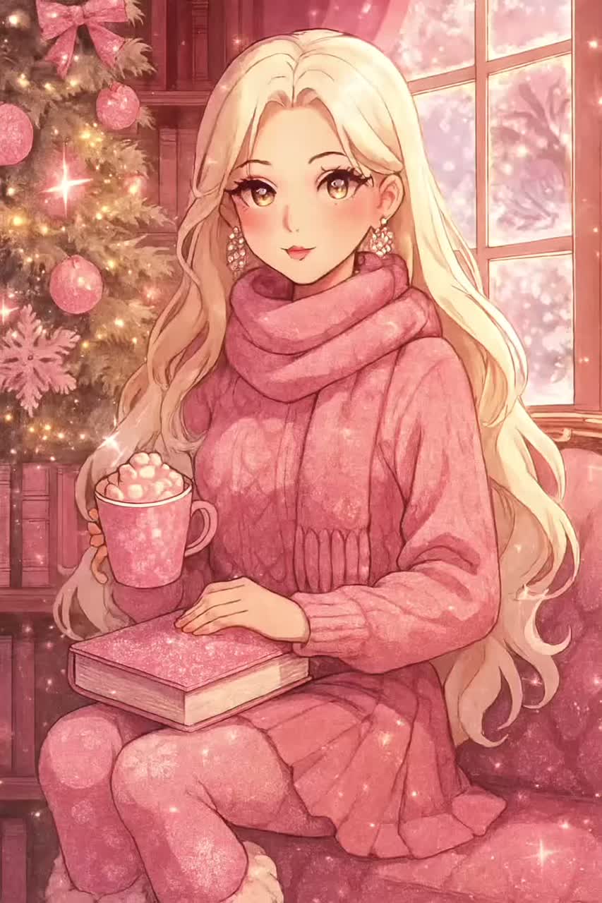 Magical fantasy library filled with Christmas and Holiday Day, Traditional Christmas music, Christmas Carol music, Classical Christmas music, Christmas pop music, Christmas bookish, December, Christmas lights glow, Toy soldiers and marching, Winter bookish, Joyous, Layers and harmonies, Themes of avid reading and writing, A book wonderland, A winter wonderland, Dreamscape, Ethereal, Orchestral, Bell Chimes, Christmas bells, Sleigh bells, Snow fx, Piano, Violin and chello, Harp, Appriegos, Celestial, ambient, symphonic, Chillwave, Shoegaze, Theatrical and cinematic, Anime vibes, Anime ost, Magical girl vibes, Christmas instrumental, Christmas fx, Magic fx, Twinkle fx, Sparkle fx, Gentle wind blowing fx, Serene winter, Snow softly falling, Lo-fi, Vinyl cracking fx and effects, Sitting by the Yule log vibe, Winter cafe, Hot cocoa, Cheery, merry and bright, Fun and upbeat, Atmospheric, Enhanced Audio Mastered, Studio Quality, Dolby Atmos, Stereo Widened Soundstage, THX, Immersive Feel