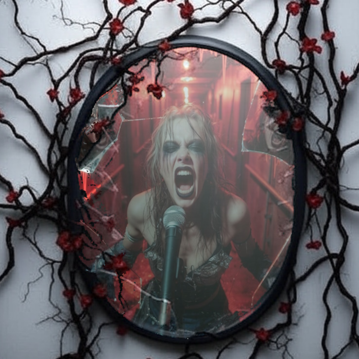 A powerful fusion of industrial and electronic rock opens with distorted synth layers, pulsing drum machines, and aggressive guitars, Verses build tension with syncopated bass and minimal textures, giving way to explosive choruses, Female vocals soar with haunting, processed effects punctuated by sensual moans and sighs, The bridge drops to warped electronics and metallic percussion before surging into a high-energy, dark wave-influenced finale