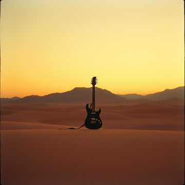 Atmospheric slow-burn electronic blues ~90 BPM, minor key, Lead: soulful electric guitar with slide phrases, light wah, subtle overdrive, spring reverb and long delay, front and center like a western soundtrack, Drums: sparse big-beat pulses (deep kick, tight snare), no EDM risers, Bass: warm, sustained, Pads: airy, like desert wind, FX: intro with 6s wind + distant guitar swells, echo tails on last words, Electronics only as light texture, guitar carries emotion, There are no vocals present