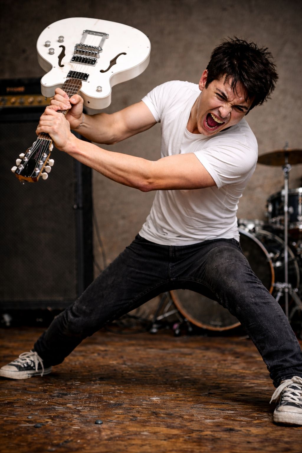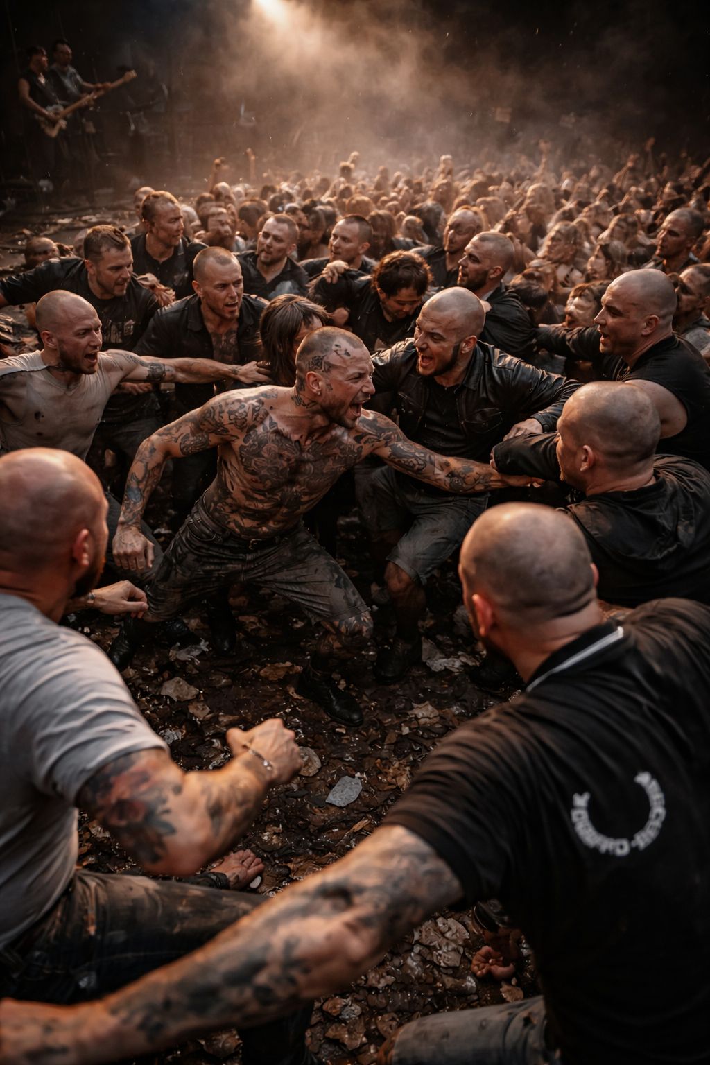 Hardcore punk anthem with raw, aggressive vocals, distorted power chords, and fast-paced drums, Angry lyrics about societal collapse, political corruption, and street rebellion, Chaotic energy, gang shouts, gritty atmosphere, The song explodes with a furious intro, charging guitars and pounding snare, followed by screamed verses about urban decay, protest, and resistance, Chorus is loud, anthemic, with shouted slogans, Bass is gritty, relentless, drums thunder like a riot, Guitar solo is short, noisy, filled with feedback and attitude, Rough production, lo-fi edge, dirty sound, Song ends with sudden stop, like a punch, 1980s UK punk influence, echo of anarchy and street rage, Lyrics include lines like "No future, no peace!", "They lie, we fight!", and "Break the chains, smash the state!" Tone is rebellious, furious, unapologetic, Perfect for a mosh pit, Keep it raw, fast, and loud, No melody polish—just noise, spit, and fury, harmonizing vocals