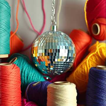 festive 70s-style holiday disco vibe with bright vocal harmonies, glittering synth lines, pulsing bass, and warm seasonal flair, "shimmering synth, " "groovy bass, " "bright vocals, " "70s vibe, "