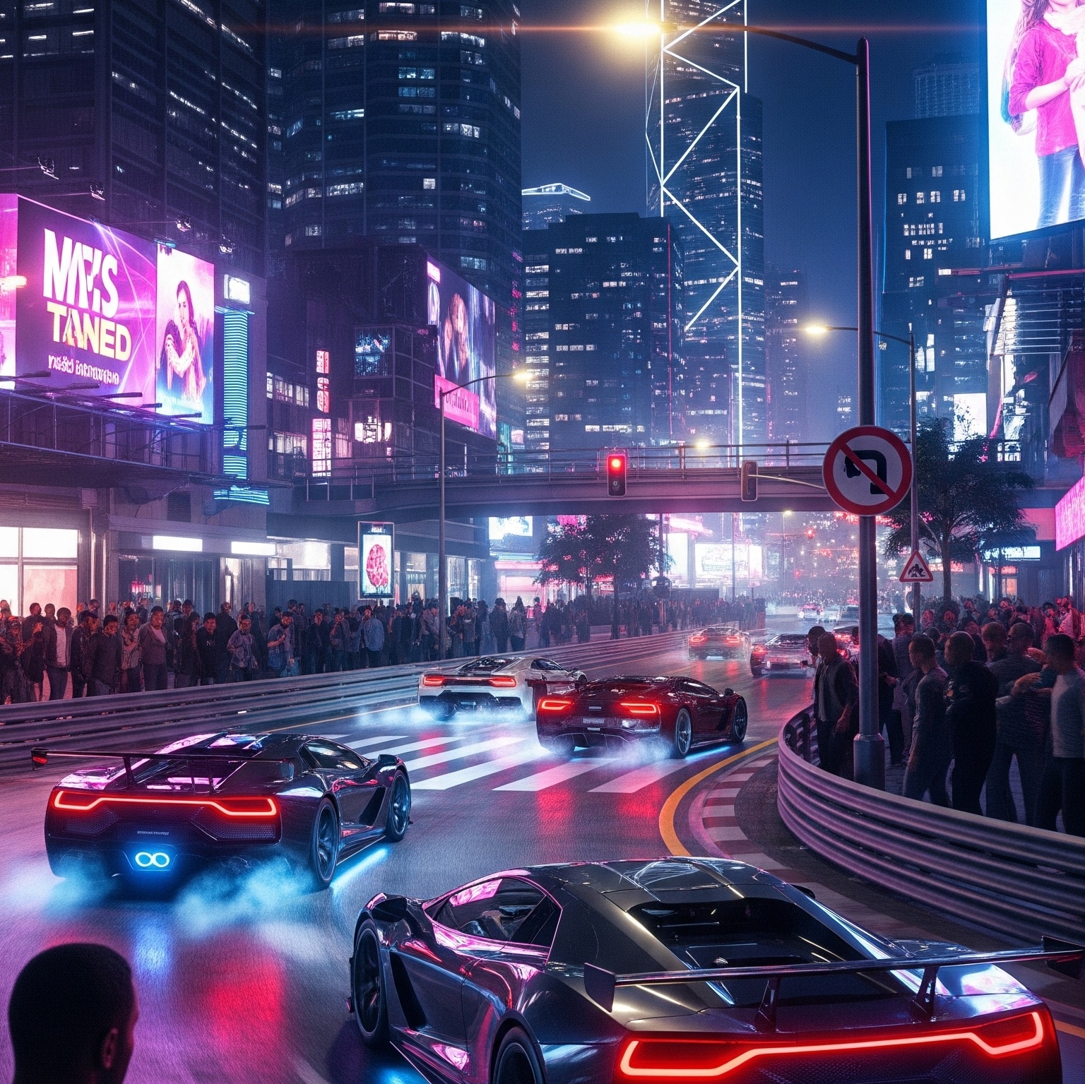 Synthwave retro futures, neon pads, driving basslines, cinematic flair