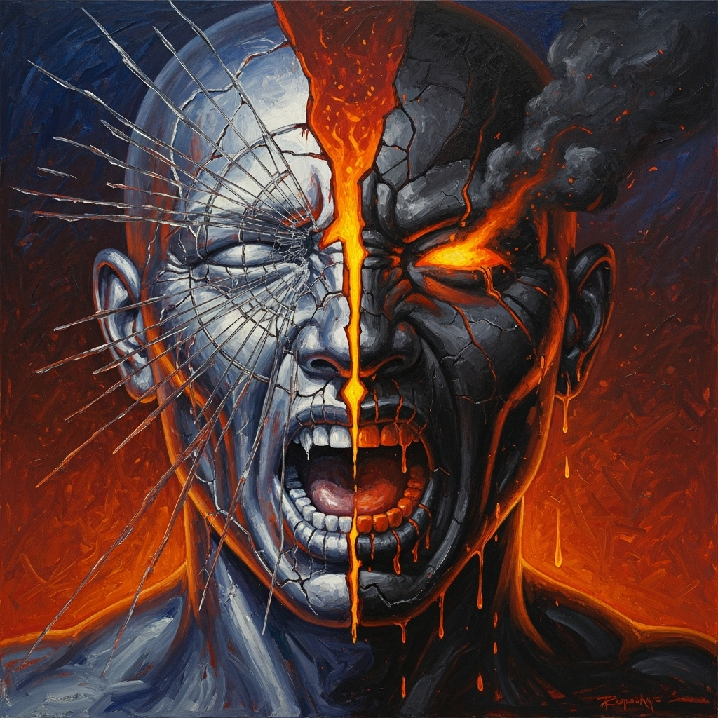 Coldwave fusion with glitchy IDM elements and industrial percussion, Sparse electronic pulses with metallic textures and processed digital artifacts, Oracle vocals: husky, metallic, reedy, brittle, nasal, crystalline, weathered, sparse with glottal fry, breathy breaks, slight tremor on sustained notes, occasional pitch cracks, whispered consonants, Precise diction, deadpanned delivery, conversational yet clipped, sprechgesang passages, monotone with emotional detachment, sighing articulations, behind-the-beat phrasing, Dissonant synth textures create tension through unconventional harmonies and microtonal shifts, Sudden dynamic shifts from near-silence to distorted crescendos, Heavy reverb on vocals with occasional dry, intimate moments, Abrupt transitions between sections, Minimalist approach with maximum impact, Binary oppositions in sound design: smooth versus harsh, simple versus complex, ordered versus chaotic, ‑humming intro, ‑hum, ‑vocalise, ‑humming, ‑intro