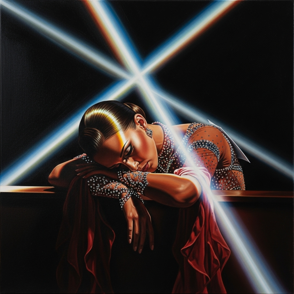 [Art Pop] [Nu-Disco] [Trip-Hop] [Jade vocals: smoky, textured, precise, intimate, weary, knowing, resonant, conversational, insistent, clipped, aspirated, sighing, rhythmic, behind-the-beat, confessional, slight gravel in lower register, widening vibrato] The track begins with a minimalist arrangement: a dry, nervous drum machine pattern and a tightly-wound, fuzzed-out bassline, The vocals are close-mic'd and intimate, with a sense of physical strain, Midway, the arrangement fractures and opens into a lush, disco-infused groove with a soaring, melodic bassline, warm brass stabs, and wide, shimmering guitars, The tempo is mid-to-up, with a steady four-on-the-floor kick drum in the second half, The overall sonic weight shifts from a constricted, mid-range heavy texture to an open, high-frequency bright and low-frequency rich soundscape, [female vocals] [atmospheric] [driving rhythm] [buoyant groove] [lush arrangement] [dynamic shift] [emotional release], ‑humming intro, ‑hum, ‑vocalise, ‑humming, ‑intro