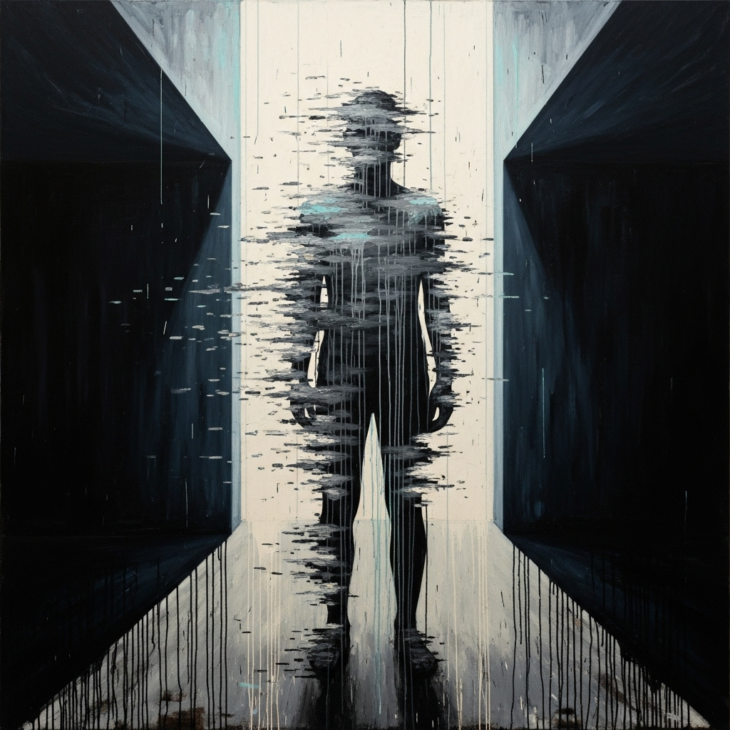 Trip-Hop, Art Rock, slow tempo 68 BPM, dark, paranoid, atmospheric, The production is claustrophobic and intimate, built on a foundation of authentic reel-to-reel tape hiss, a heavy sub-bass pulse, and a deep, felted kick drum, The primary instrument is a detuned, close-mic'd upright piano playing sparse, dissonant chords, A subtle, distorted string section swells in the background during moments of tension, The mix is heavy and oppressive, with very little high-frequency content, creating a pressurized, submerged feeling, The arrangement is minimal and full of negative space, [Listener vocals: intimate, smoky, arid, veiled, bone-dry, threadbare, grainy, hushed, deadpanned, confessional, dissociated, anxious, paranoid, resigned, shell-shocked, spoken-word inflection, behind-the-beat, featuring breathy texture, cracked notes, glottal fry, a quavering delivery, and an unsteady, whisper-crackle quality, ], ‑humming intro, ‑hum, ‑vocalise, ‑humming, ‑intro