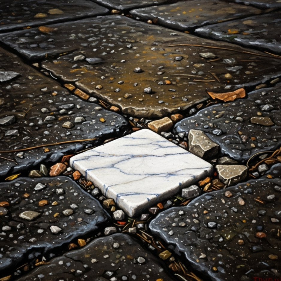 Trip-Hop + Hauntology + Coldwave, A meticulously crafted soundscape built on a foundation of tense, jittery 6/8 trip-hop rhythms sourced from archival foley and found sounds: the sharp click of a loupe, dry paper shuffles, the low thump of a knuckle on canvas, A persistent, subterranean coldwave synth drone creates a bed of clinical paranoia, while a mournful, heavily-reverbed pedal steel guitar weaves through the track like a ghost, providing unexpected moments of organic, weeping texture against the sterile, electronic pulse, The production is extremely dry and intimate on the rhythm and vocals, contrasted with cavernous reverb on the pedal steel, The track adheres to a strict quiet-LOUD-quiet dynamic, with sparse, anxious verses exploding into dense, overwhelming choruses, Featuring the vocals of [Gesso], a dry, husky, and bone-dry voice with a sinewy, threadbare timbre, delivered in a confessional, hushed, and weary style with precise diction, ‑humming intro, ‑hum, ‑vocalise, ‑humming, ‑intro, ‑vocalisations