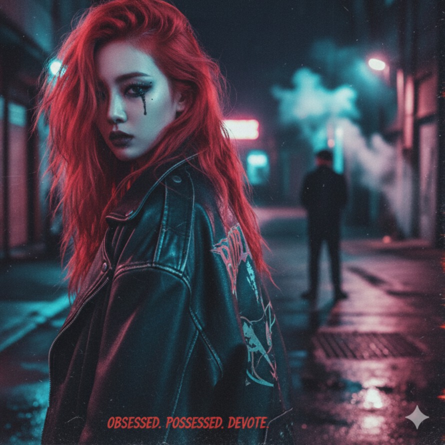 K-pop solo female, dark pop, hip-hop R&B, confident and seductive vibe, minimalist beat, deep bass, trap drums, glossy synths, attitude, luxury aura, fashion-forward, bold energy, clean but powerful vocals, modern 2020s k-pop, confident female anthem