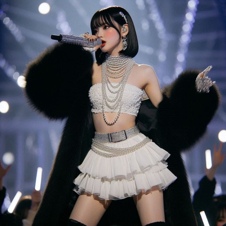 Confident female K-pop rap, luxury attitude, trap beat, heavy 808 bass, catchy chant chorus, stylish and powerful vibe, high fashion energy, modern pop rap, Korean and English mix, bold and charismatic female vocals, club anthem, dark glossy production, Live performance, concert version, Live performance, concert, break dance hard, remix