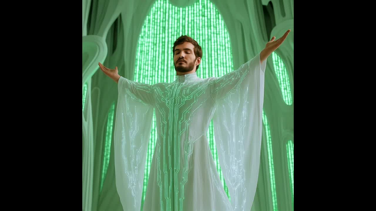 Lead Male voice, Background Gregorian Choir, progressive Drum & Bass, ethereal pads, tribal percussion loops, distorted reese bass, 174 BPM, glitch textures, dark ambient atmospheres, vocal throat singing FX, sacred mantra fragments, low sub drops, spiritual bells, church organ layers, ritual chime strikes, breathing samples, shimmering drones, neurofunk drums, reverse textures, harmonic overtones, ritualistic rhythm patterns, transcendental breakdowns, binaural-inspired FX, digital chanting, cathedral reverb, environmental textures, cosmic transitions, analog warmth, mechanical accents, bell toll FX, filtered sweeps, hypnotic loops, mind-expanding bridges, ritual cyber ambiance