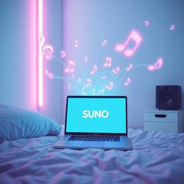 Deutschsprachiger Electro-Pop / Future-Bass-Song über das Kreieren von Musik mit SUNO AI, Tempo ca, 128 BPM, energetisch und emotional, Klare, moderne Lead-Vocals (weiblich oder androgyner Pop-Style), Eingängiger Refrain mit der Hookline: „SUNO, wir malen mit Klang in Neonfarben“, Strophen erzählen, wie man nur mit Ideen und Laptop startet und zusammen mit der KI Songs baut, Druckvoller, moderner Mix: fette Sidechain-Synths, warme Pads, 808-Bass, crispes Drumdesign, leichte Vocal-Chops, Struktur: Intro – Strophe – Pre-Chorus – starker Drop/Chorus – kurzes Instrumental-Solo – zweite Strophe – Pre – großer Final-Chorus mit Chören und Ad-Libs – atmosphärisches Outro mit viel Reverb