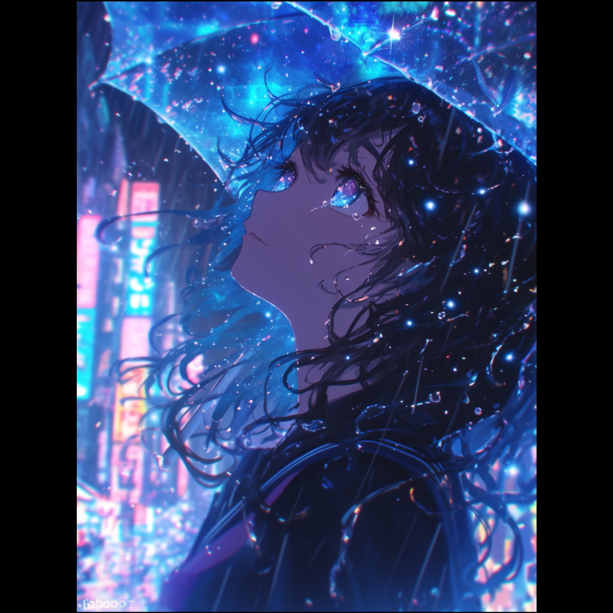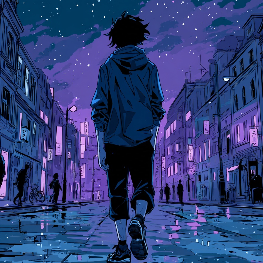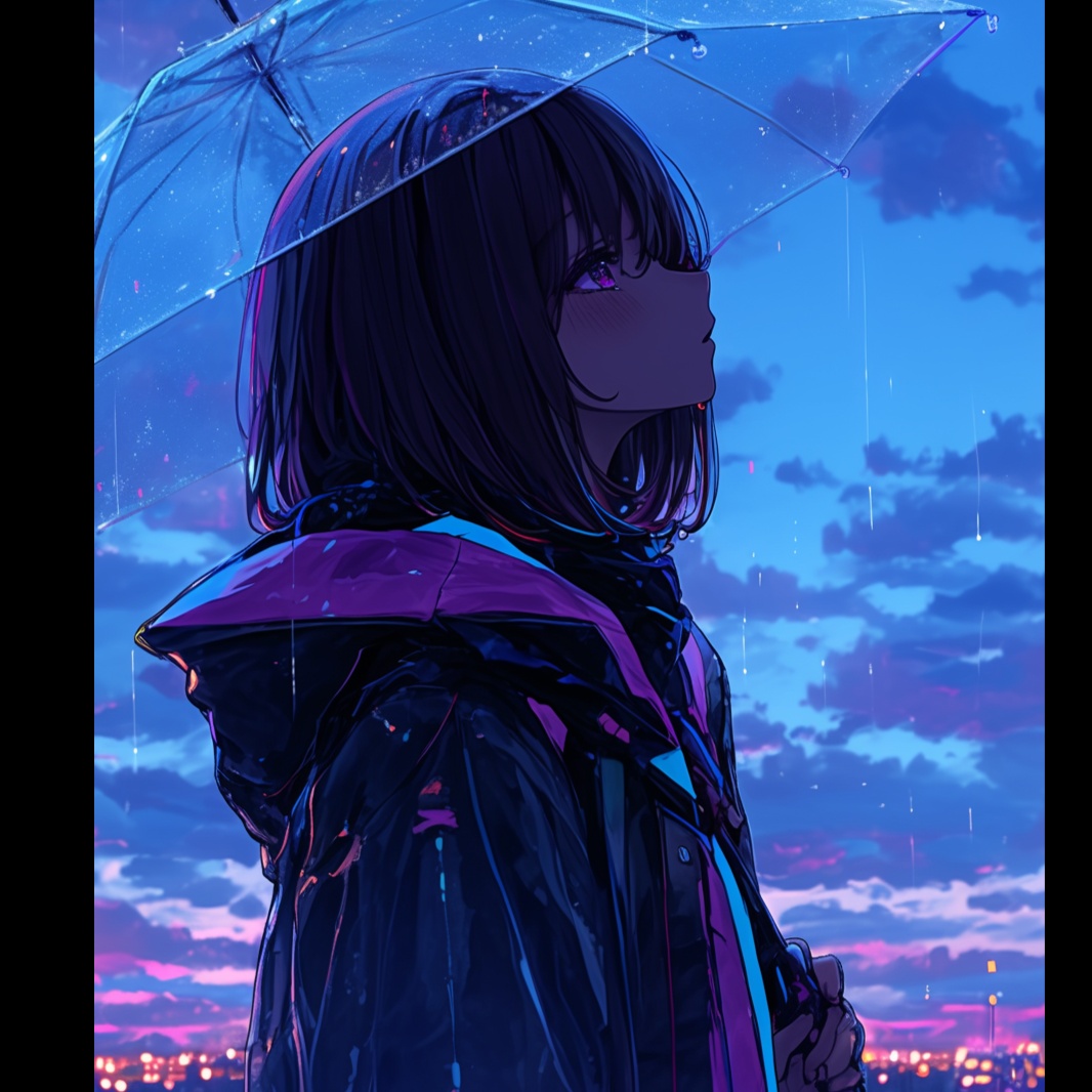 Neo-Tokyo synthpop with cinematic electronica flair at 100–110 BPM, layered synth arpeggios and ambient textures, urban reverb-heavy pads, subtle rhythmic pulses, breathy and emotive female vocals with Japanese-English-German lyrical flow, rain-inspired FX, futuristic yet nostalgic mood evoking a cosmic cityscape in the rain
