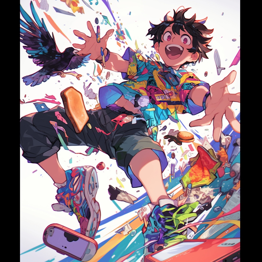 Hyper-cute denpa-style electro pop with quirky synths, fast tempo, and energetic female vocals in Kansai dialect, Chaotic, playful, and surreal like a comedic anime character song