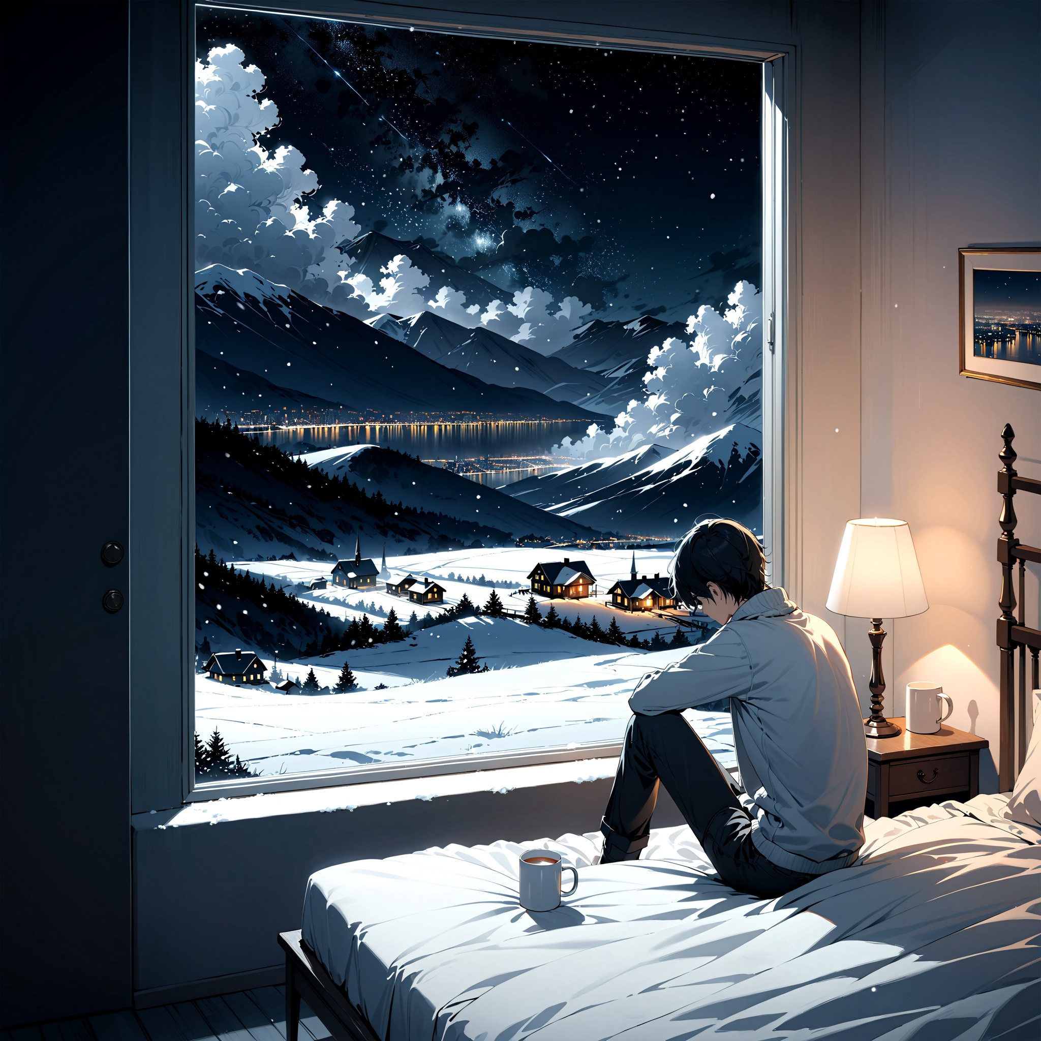 Emotional Japanese ballad with soft piano, warm strings, and a mid-tempo lo-fi beat, Nostalgic yet hopeful, evoking loneliness on a snowy night, Delicate vocals, gradually building with energy