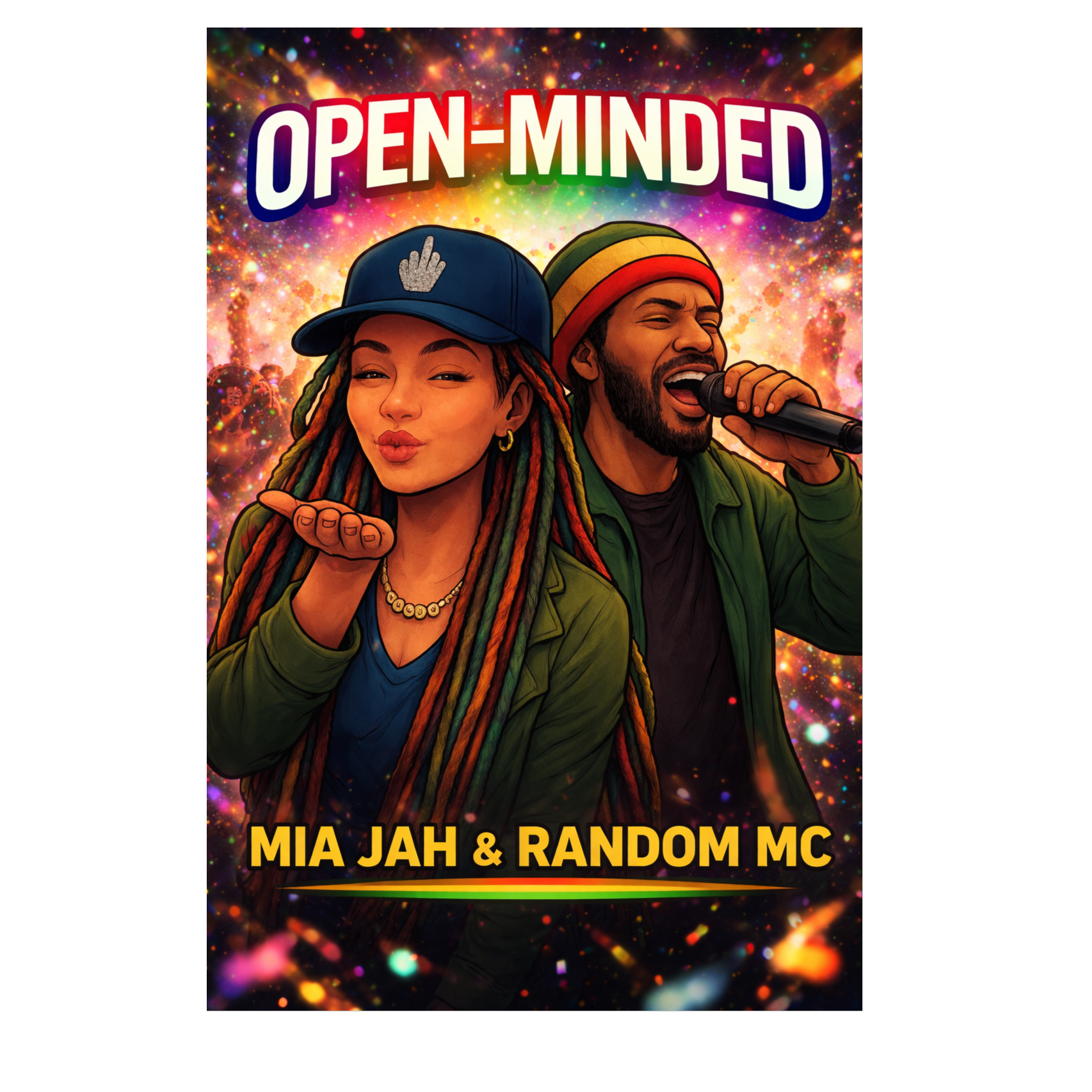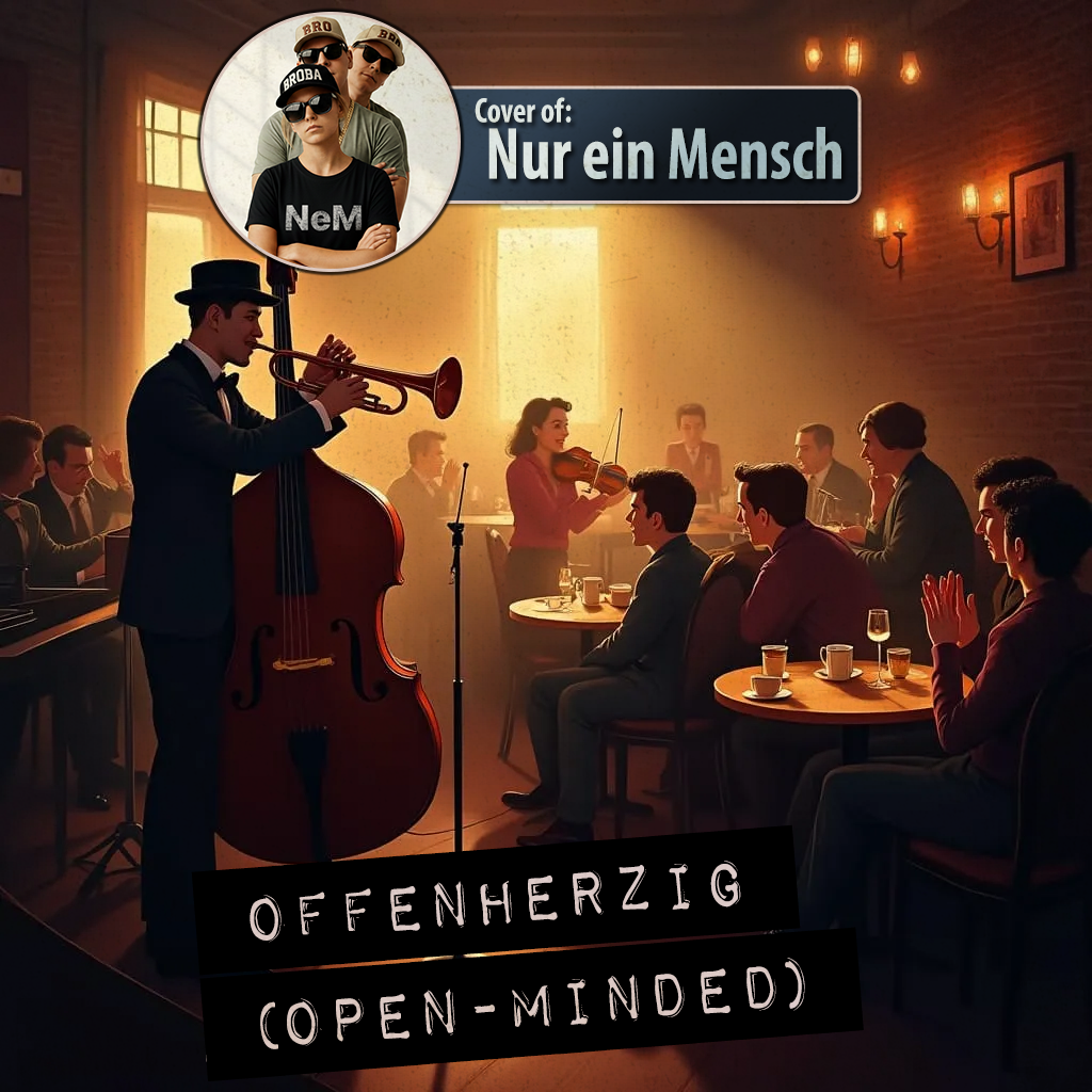 Acid Jazz, Funk, Doo-Wop, R&B, Glitch Hop, Experimental | Style:live concert atmosphere, strong stage presence, clear main vocals, call-and-response between singer and audience, prominent Doo-Wop harmonies in background only, audience claps/snaps/woo, sing-along moments, hall on chorus, warm mid/low duet voices, energetic instrumentation with small glitches, sudden genre accents | Musik: live bass, electric guitar, Rhodes, glockenspiel, Cajón, pitch-shifting, layered vocals, hall + reverb, prominent crowd claps/snaps/cheers, sing-along layers, subtle Slawisch/Italian whispers only in background | Voice(s): male/female duet, mid/low register, neutral accent, romantic serious tone, clear pronunciation, dynamic phrasing, call-and-response, occasional pitch embellishments, ‑Dream Pop, ‑Ambient, ‑New Age, ‑Country, ‑Bluegrass, ‑Opera, ‑Christian Rock, ‑Black Metal, ‑Gabber