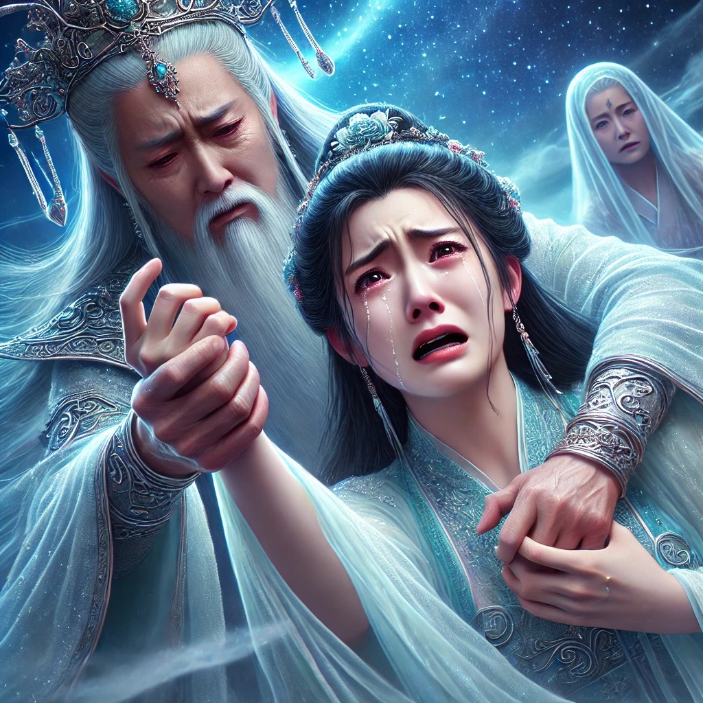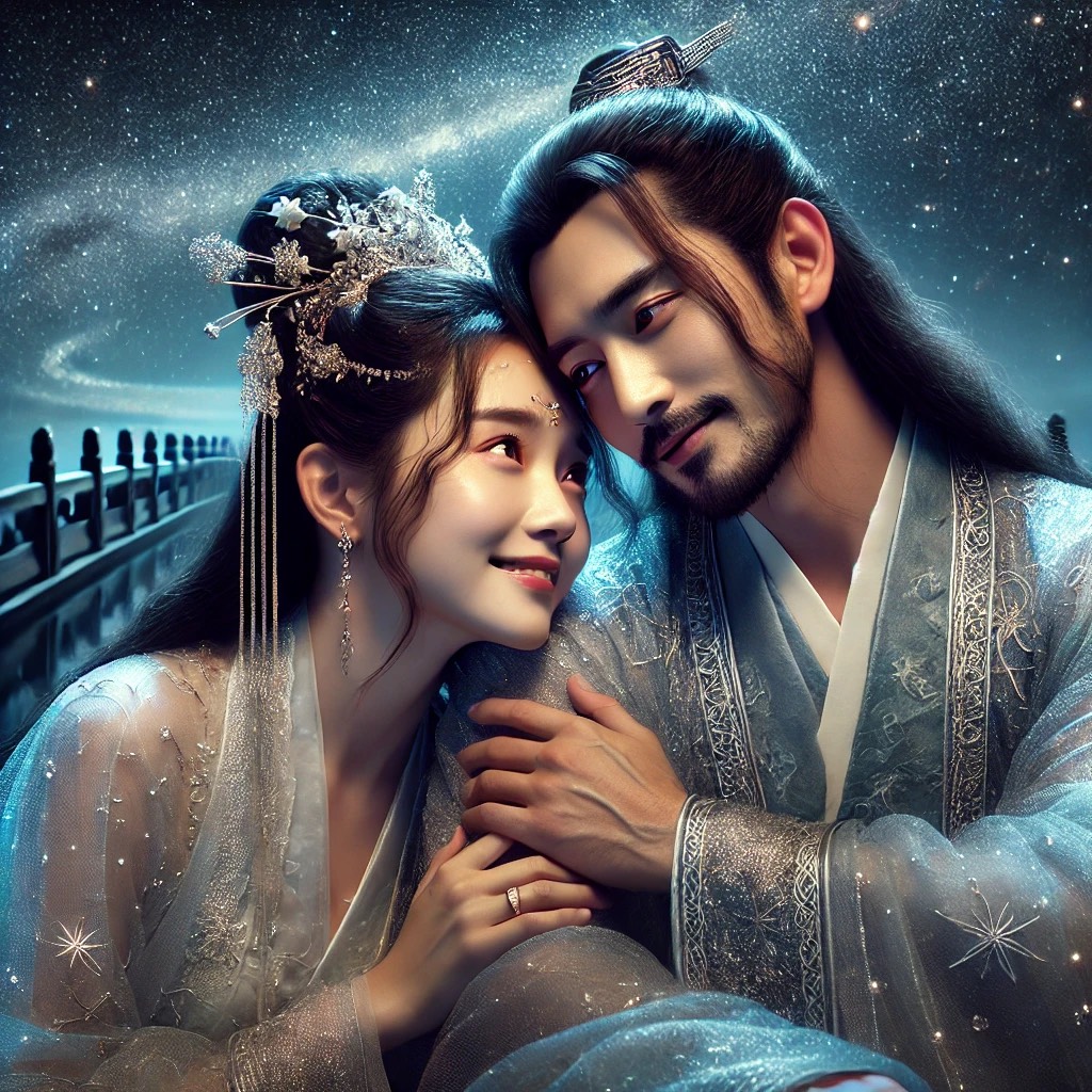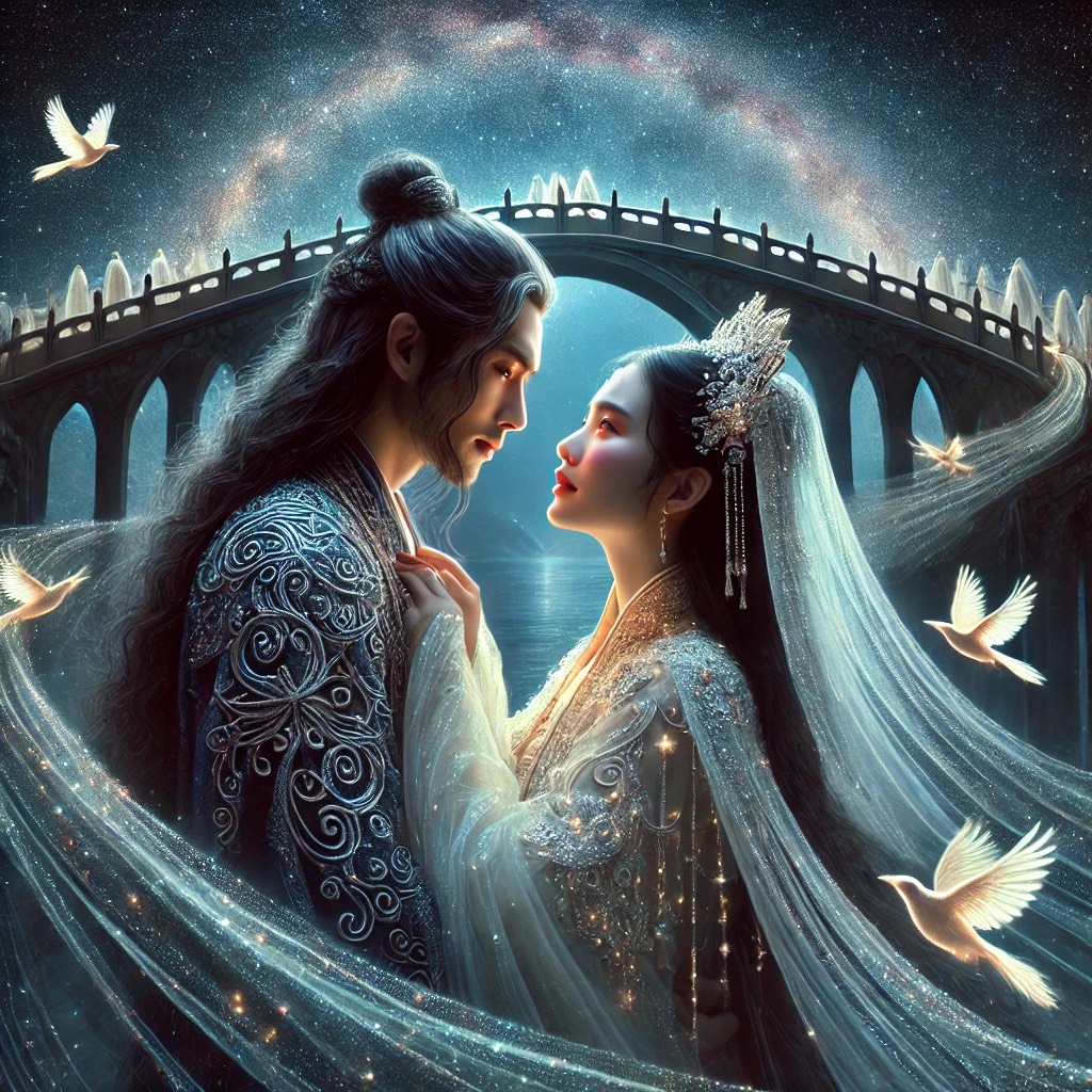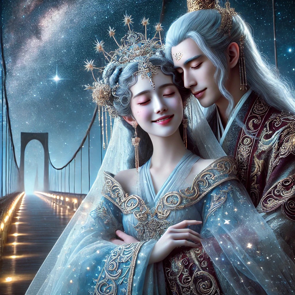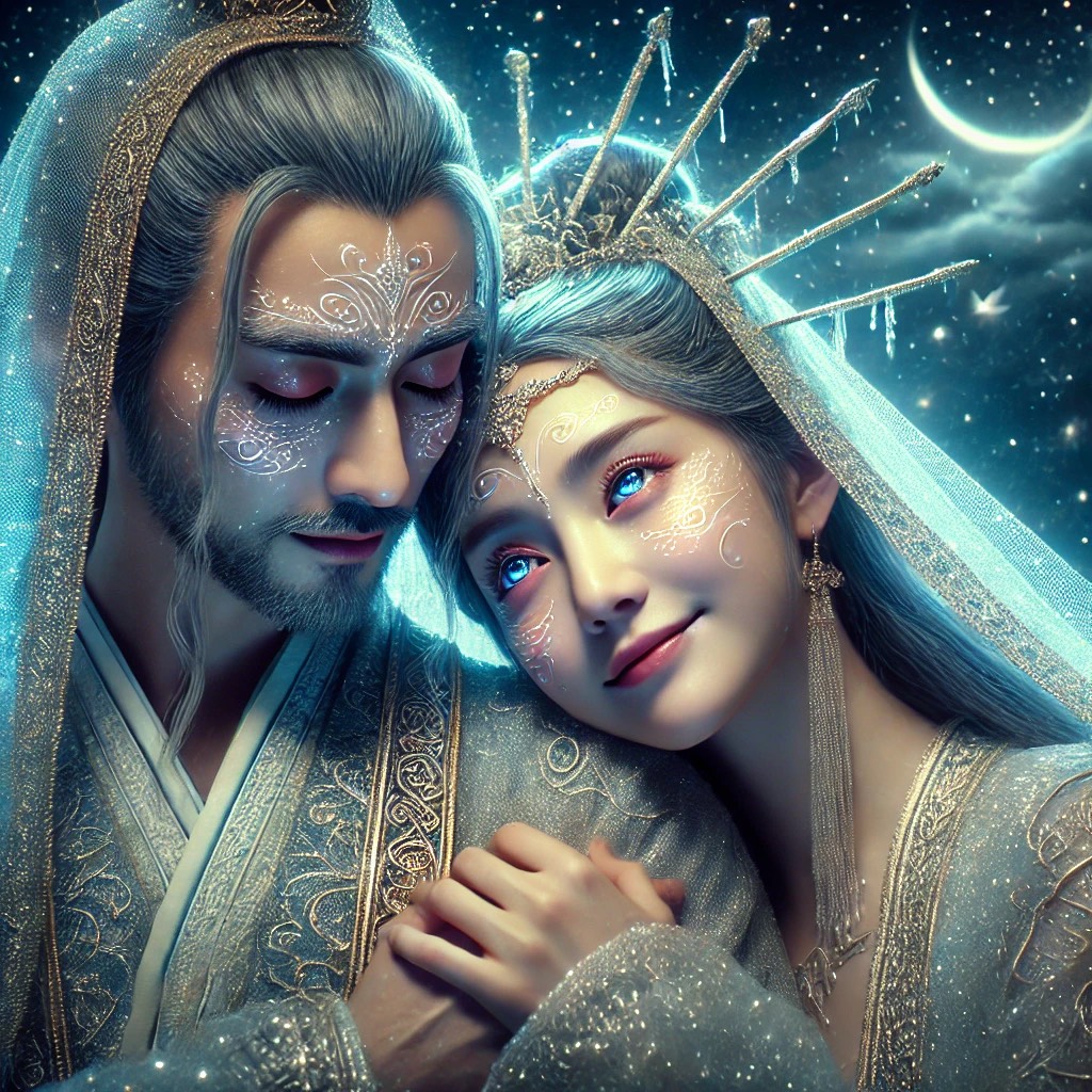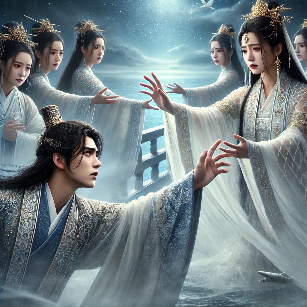 A celestial fusion of ethereal dream pop and traditional Chinese folk melodies, layered with orchestral crescendos and electronic ambient textures, harp, flute, erhu, guzheng, dizi, piano, violin