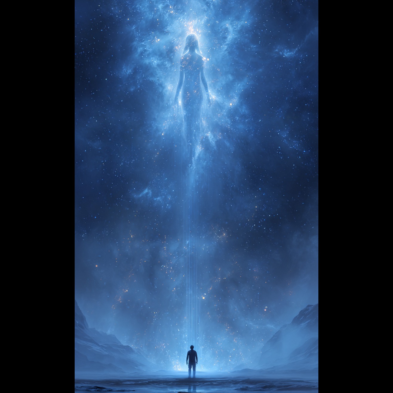 Cinematic synth-forward post-rock at 82–90 BPM in D major shifting to B minor, evoking wonder and cosmic distance, Expansive analog pads (Juno-106, Prophet-6) and shimmering clean guitar arpeggios with heavy reverb/delay create a vast atmosphere, Soft drums build into a steady, driving rhythm with subtle LinnDrum and MPC 3000 layering, Warm synths (Moog Sub 37, OB-Xa) carry evolving melodies with filter sweeps and LFO motion, Guitars use EBow, tremolo picking, and volume swells, blending into a wide stereo field, Structure builds from ambient intro to soaring climax with layered guitars and synth leads, then fades into spacey textures with radio static and signal noise, Tone is reflective, curious, and full of cosmic wonder, Male vocalist, range G2 to C6 (3, 4 octaves), tenor range of A2 to A4, pure tenor, "dulcet" and resonant quality that allows to project clearly without over-singing, powerful belting ability and pleasant falsetto, Low Register G2 or A2