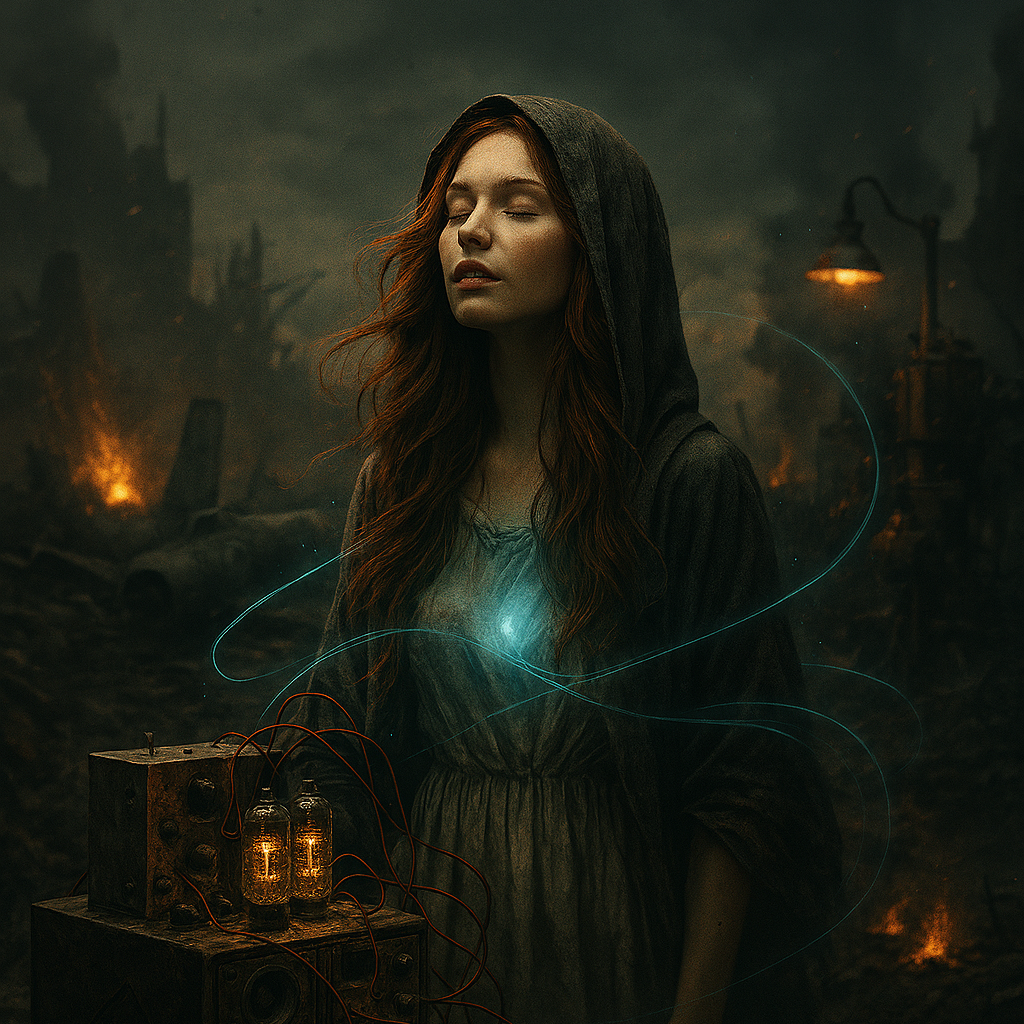 Electro-acoustic ambient ritual with rare instruments: cristal baschet, glass armonica, aeolian harp, thunder sheet, singing bowls, stroh violin, daxophone, aquaphone, friction drum, thunder tube, bowed cymbals, wind chimes, water drums, overtone chant, No synths, no standard drums, Ethereal, shimmering, mysterious, Focus on resonance, texture, and spatial depth, Tempo ~70 BPM, Hypnotic, surreal, dreamlike