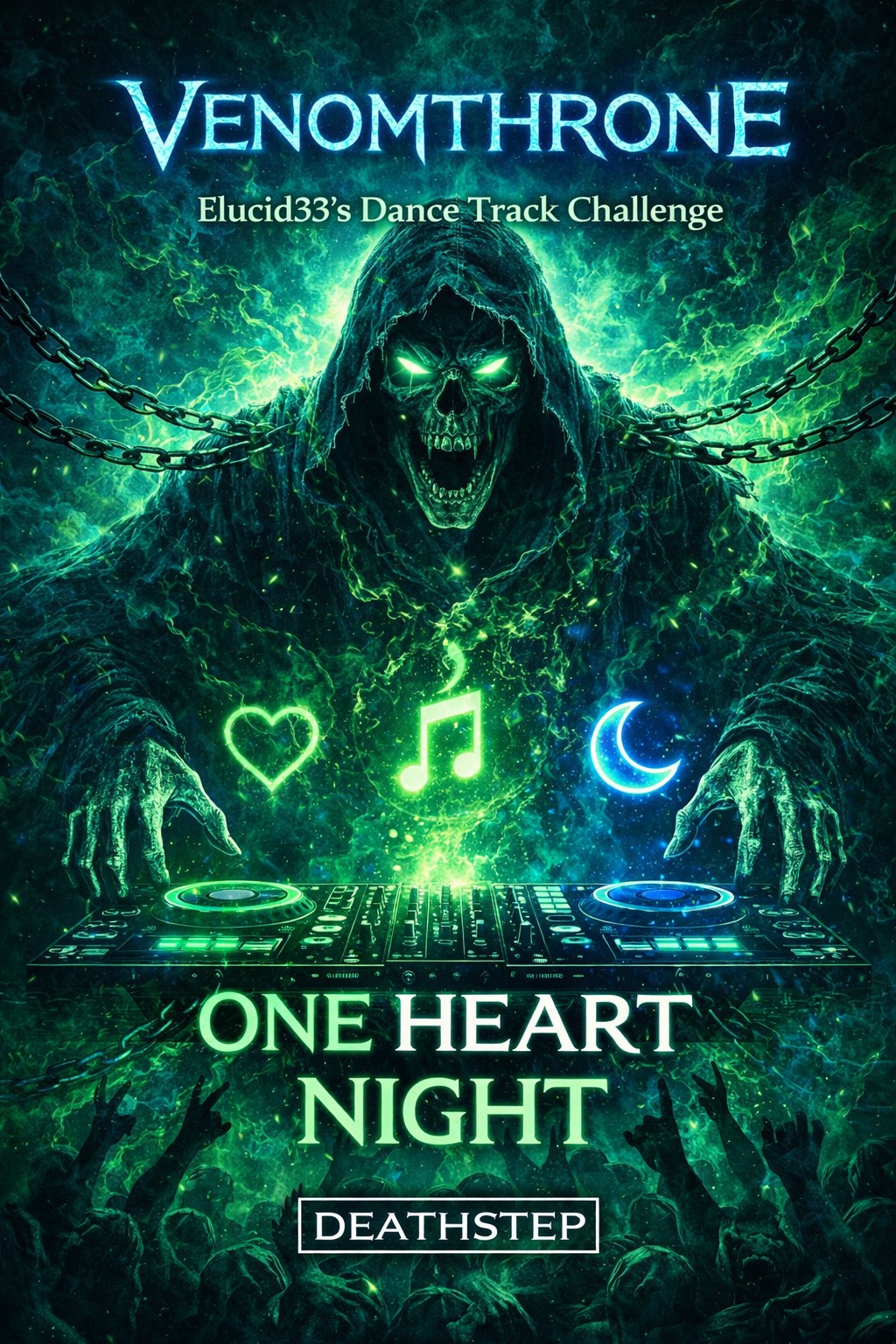Fast hypnotic club track with pounding kick drum and pulsing bass groove, Minimal dark synths and rhythmic violin loops repeating like a heartbeat, Female whisper vocals repeating “one night, one beat, one heart, ” Build strong dance momentum with rising energy, glitch percussion, and atmospheric echoes, No cheesy EDM melodies — underground, hypnotic, powerful dancefloor rhythm