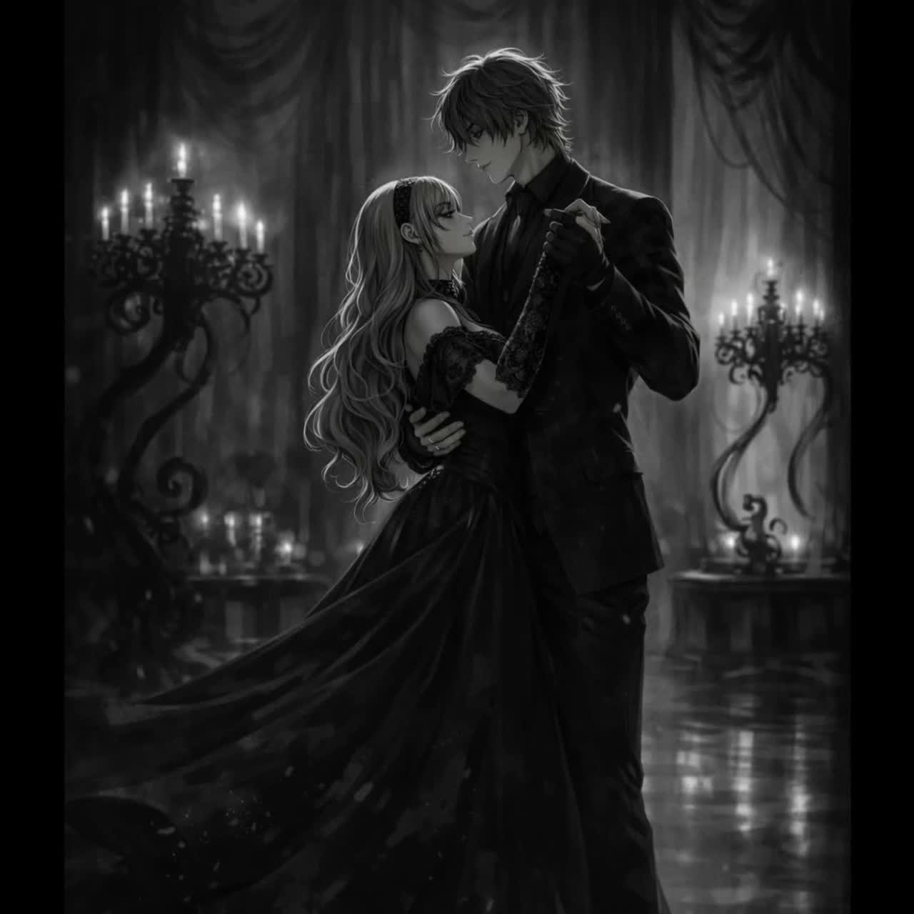 Dark gothic ballroom waltz, ~72–78 BPM in 3/4 time, minor key, cinematic and hypnotic, Grand piano leads with velvet-dark chords, joined by low strings, subtle contrabass, distant brushed percussion, and soft glassy textures drifting like candlelit haze, No choir, no church mood, Atmosphere should feel intimate, nocturnal, vampiric, and elegant, like a slow dance in a shadowed hall, Female lead vocal only, low alto to mezzo, breathy and controlled, seductive but restrained, with long sustained vowels and echoing phrasing on words like one, heart, beat, night, Delivery slow, graceful, and immersive, with dramatic pauses and lingering reverbs, Arrangement gradually swells with deeper bass, richer strings, and haunting ballroom tension, then fades into a dark, echoing final turn