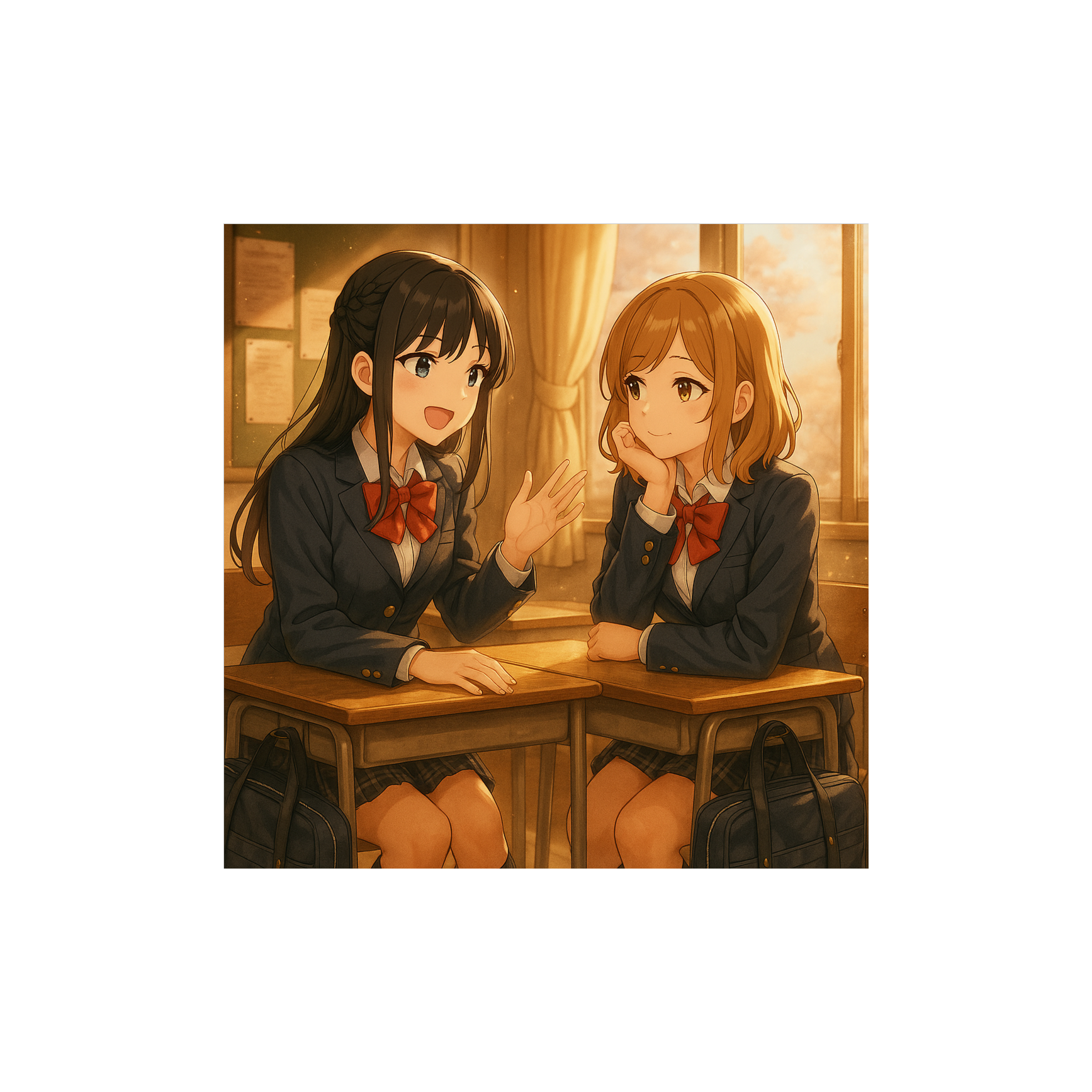 Cute modern J-Pop track starts with a percussive digital beat and playful synth melody, segueing into soft synth pads and muted guitar, Bouncy verses feature clean guitar chops and arpeggios; synth chords and snare rolls build to a bright chorus with punchy digital drums and catchy hooks, Instrumental interlude highlights synths, then a melodic guitar solo layered with synth harmonies, The bridge pares down to airy pads, pulsing bass, and emotional vocal lines, Final outro fades with a synth motif and gentle guitar, vocals crisp and forward, drums tight, bass warm, guitars stereo-panned