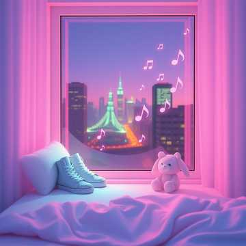 Loose 8-beat + light drums (with a little gated reverb), DX7-style electric piano, JUNO-60 polysynth pad, Analog-style synth bass (round, thick, bouncy lines), Sparkling bell-like synths at key points, 80's-style string pad (low highs), The rhythm is straight, not too bouncy, The chorus has a "doo-doo" sound, A cute humming melody like this is used lightly, A simple synth lead (retro game style) is used in the interlude, Mixing: