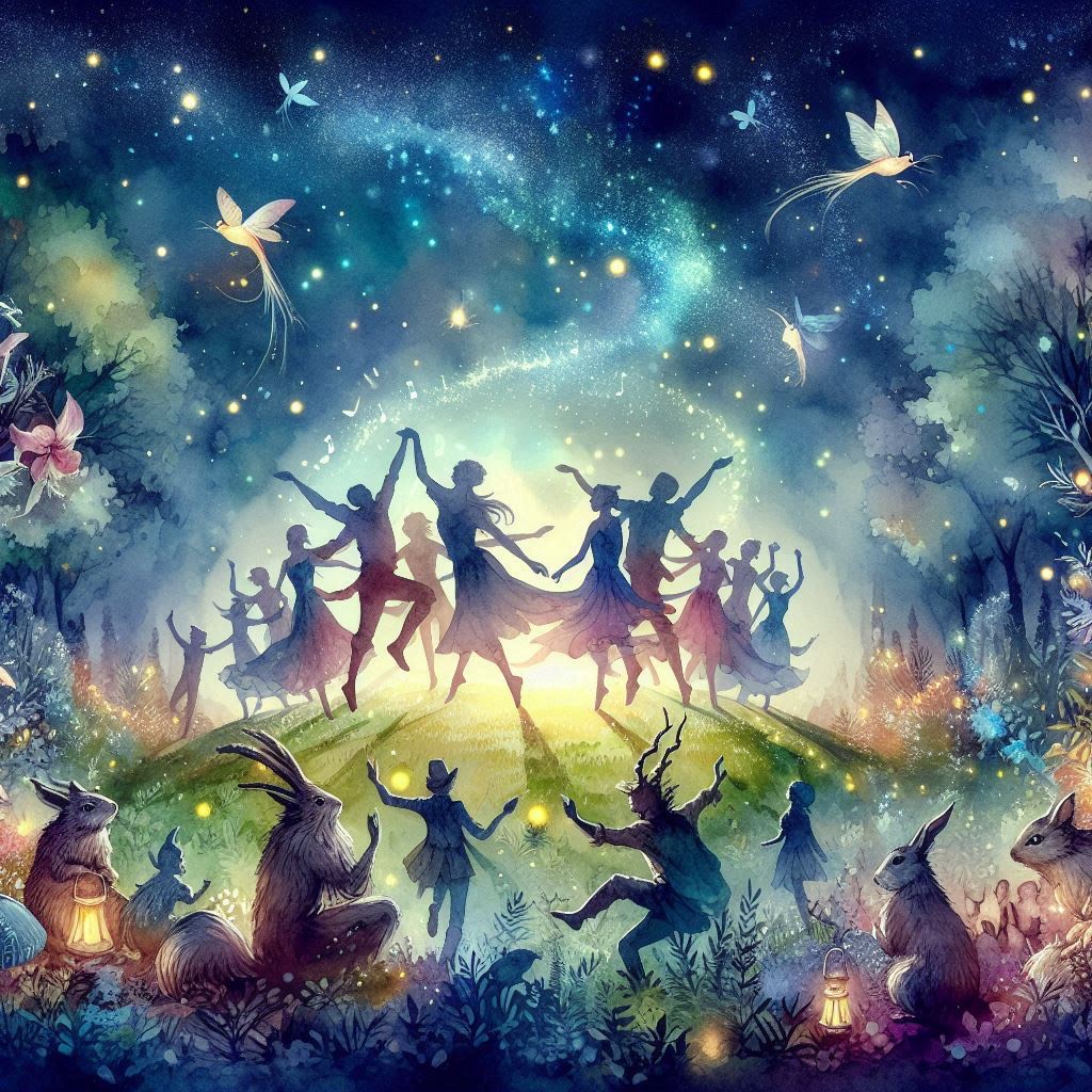 harp and humming human voices, banjo, harp, bodhran, celtic, slow irish celtic dance with irish whistle, slow, dance