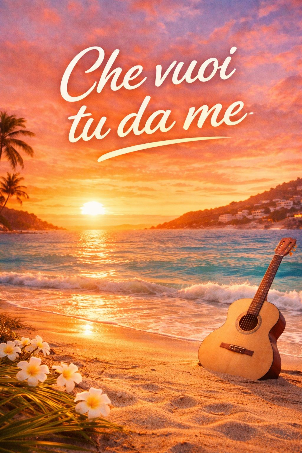Italian summer latin pop song with Ibiza beach club vibe, emotional but uplifting male vocals, Style: latin pop with light reggaeton groove, very catchy and danceable, BPM 98, Instruments: Spanish nylon guitar (very important, rhythmic strumming + melodic hooks), latin guitar riffs, light flamenco touch, reggaeton beat (kick, snare, dembow), claps, warm bass, subtle pads, After every refrain add a HAPPY LATIN GUITAR hook (sunny, melodic, catchy, Ibiza style), Structure: short guitar intro → verse light groove → build-up rising → pause → catchy refrain → DROP with full beat + guitar hook → dance instrumental → verse 2 shorter → rhythmic break → emotional bridge → strong build-up → final refrain bigger → final DROP → short outro, Vocals: expressive, warm, slightly raspy, rhythmic phrasing, with “oh–oh”, “eh”, “hey” adlibs, Mix: punchy, wide stereo, bright, strong bass, club-ready, summer hit, Italian Latin Pop / Ibiza / Summer Hit