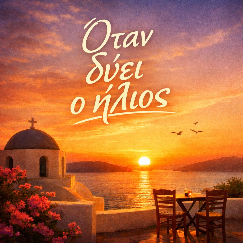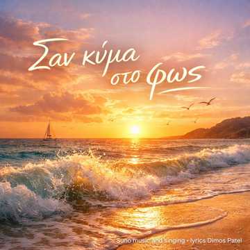 Έντεχνο-Pop τραγούδι στα Ελληνικά, καλοκαιρινό και φωτεινό, 112 BPM, Σύγχρονος pop ρυθμός με ελληνική αισθητική, Κύριο όργανο: ακουστική κιθάρα (αρπίσματα στα κουπλέ, πιο ανοιχτό strumming στο ρεφρέν), Διακριτική ηλεκτρική κιθάρα με chorus/delay για ατμόσφαιρα, Ζεστό μπάσο, καθαρά pop drums (όχι heavy, όχι rock), Pads πολύ απαλά μόνο για βάθος, Δομή: