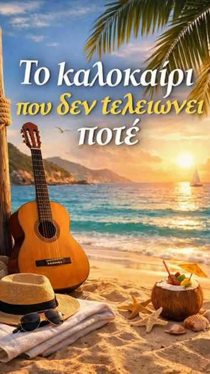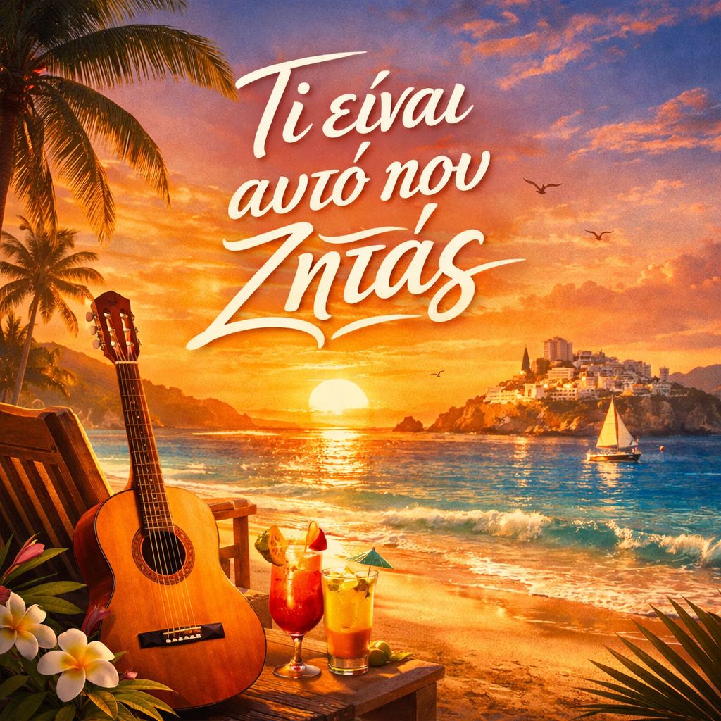 Modern Greek summer pop song with nostalgic Mediterranean beach feeling, Warm emotional male vocals in Greek language, expressive and heartfelt, with a light smile in the voice, Style: modern summer pop with soft Latin / Mediterranean influences, radio-ready and melodic, Instrumentation: very important bright nylon acoustic guitar with catchy melodic summer hook after every chorus, soft percussion, gentle claps, warm bass, airy pads, subtle whistle melody, light sea-wave ambience in intro and outro, Mood: nostalgic, emotional, sunny, memories of childhood summers, beach colors, lemon granita, iced coffee on a balcony, sea breeze, white houses, narrow streets, Structure: soft intro with waves, emotional verse, rising build-up, big catchy chorus, then recurring instrumental summer guitar hook (very important) repeated 2x after every refrain, BPM 96–102, Clean wide stereo mix, uplifting but sentimental, summer hit, memorable chorus, festival-ready hook, strong replay value