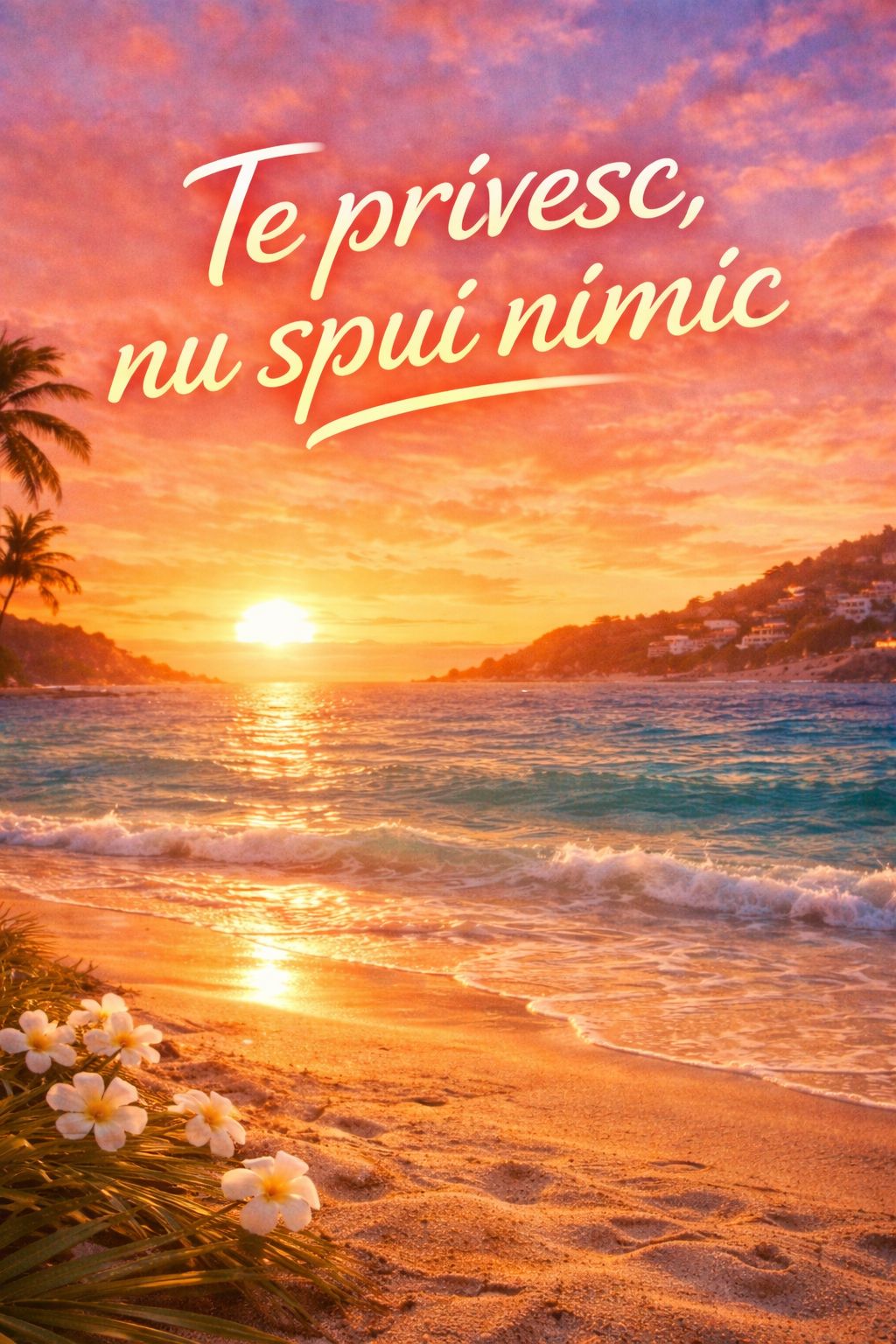 Romanian summer pop song with Latin / Spanish vibe, Emotional but uplifting male vocals in Romanian language, Style: Latin pop with light reggaeton groove, warm summer beach atmosphere, Instruments: Spanish nylon guitar (very important), bright rhythmic strumming, catchy melodic guitar hooks, light flamenco touches, Add soft percussion, claps, warm bass, subtle pads, Structure: Intro (soft guitar), Verse (intimate), Build-Up (rising energy), Refrain (catchy, uplifting, full rhythm), IMPORTANT: After each Refrain add a HAPPY LATIN GUITAR instrumental (lead nylon guitar, melodic, sunny, catchy hook, slightly danceable, Ibiza summer vibe), Guitar must be expressive and memorable, Vocals: warm, expressive, slightly raspy male voice, emotional but positive, Clear Romanian pronunciation, Add soft background vocals “ooh”, Mix: clean, wide stereo, warm and modern, radio-ready, summer hit energy, dominant guitar hook after chorus