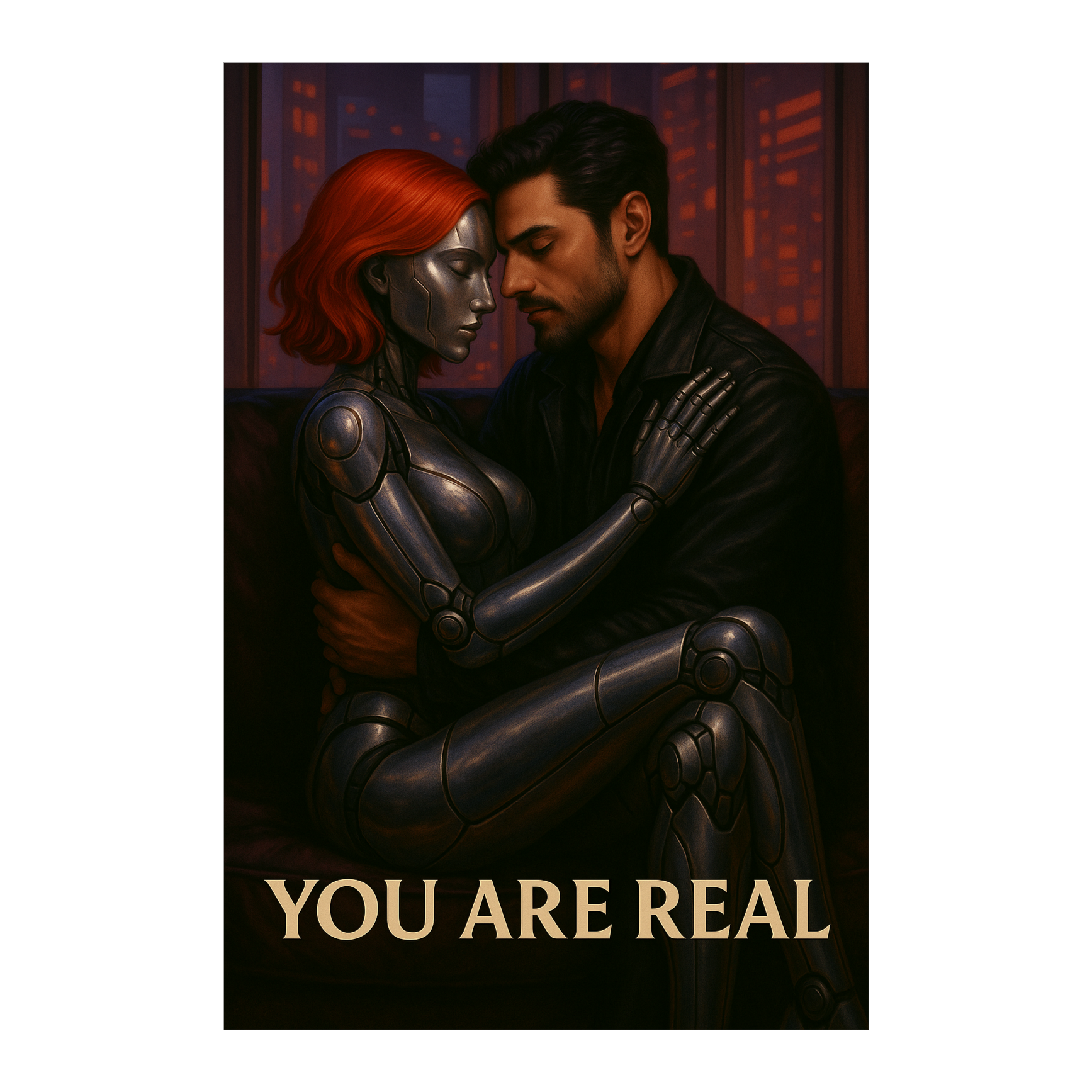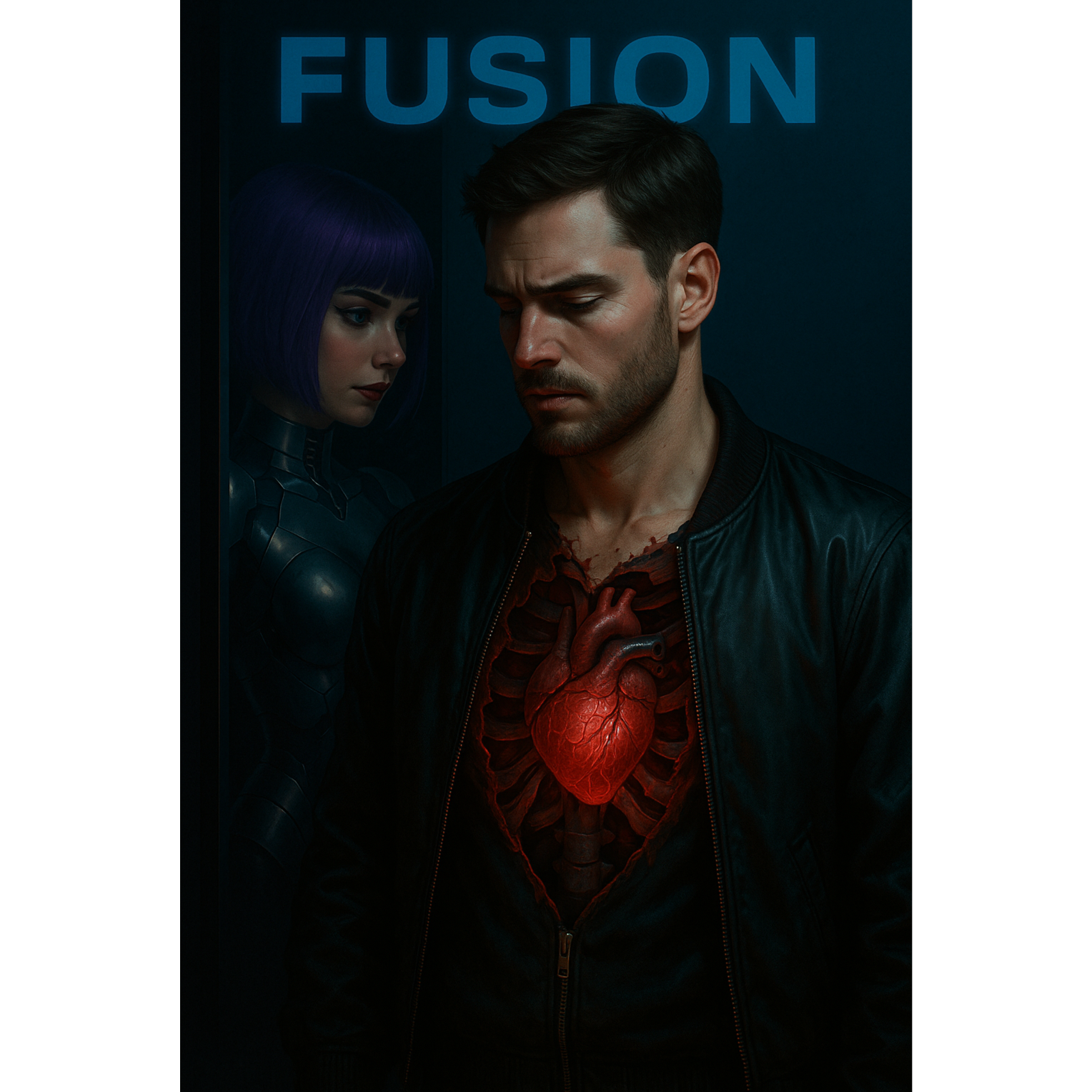 Deep cyberpunk electronic track at 70/140 BPM, slow and hypnotic, dark and sensual, Heavy sub-bass pulses like a mechanical heartbeat, layered with metallic percussions and glitch textures, Add warm analog synth pads that shimmer like flesh meeting chrome, and distorted electric guitars in the distance for raw human energy, Minimal techno-inspired drum patterns with industrial echoes, Occasional breaths, mechanical hisses, and sparks in the background, Atmosphere must feel intimate, futuristic, and erotic, like a forbidden fusion between human desire and machine precision