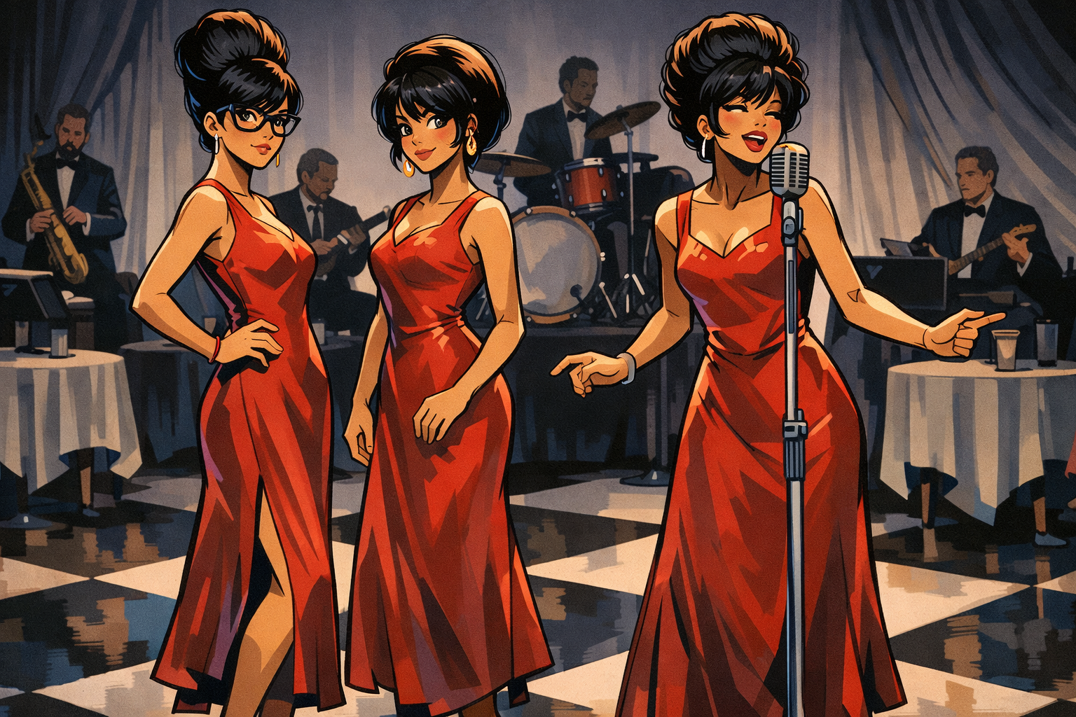 bedroom pop, dream pop, cloud rap, alt hip hop, early Motown, girl-group, soul-pop, intimate close-mic vocals, clear restrained lead, conversational pop-soul phrasing, close-harmony responses, call-and-response layering, beatboxing, handclaps, foot-stomp percussion, tight danceable backbeat, steady drums, electric bass pulse, piano stabs, electric guitar chanks, vibraphone accents, record scratching, glitch effects, micro-edited arrangements, polished DIY indie pop sensibility, clean modern pop low end, airy high frequencies, subtle saturation, wide stereo imaging, restrained dynamic movement, bittersweet urgent dancefloor vibe, dreamy haze, minimalist hook-forward groove, polished punchy mix