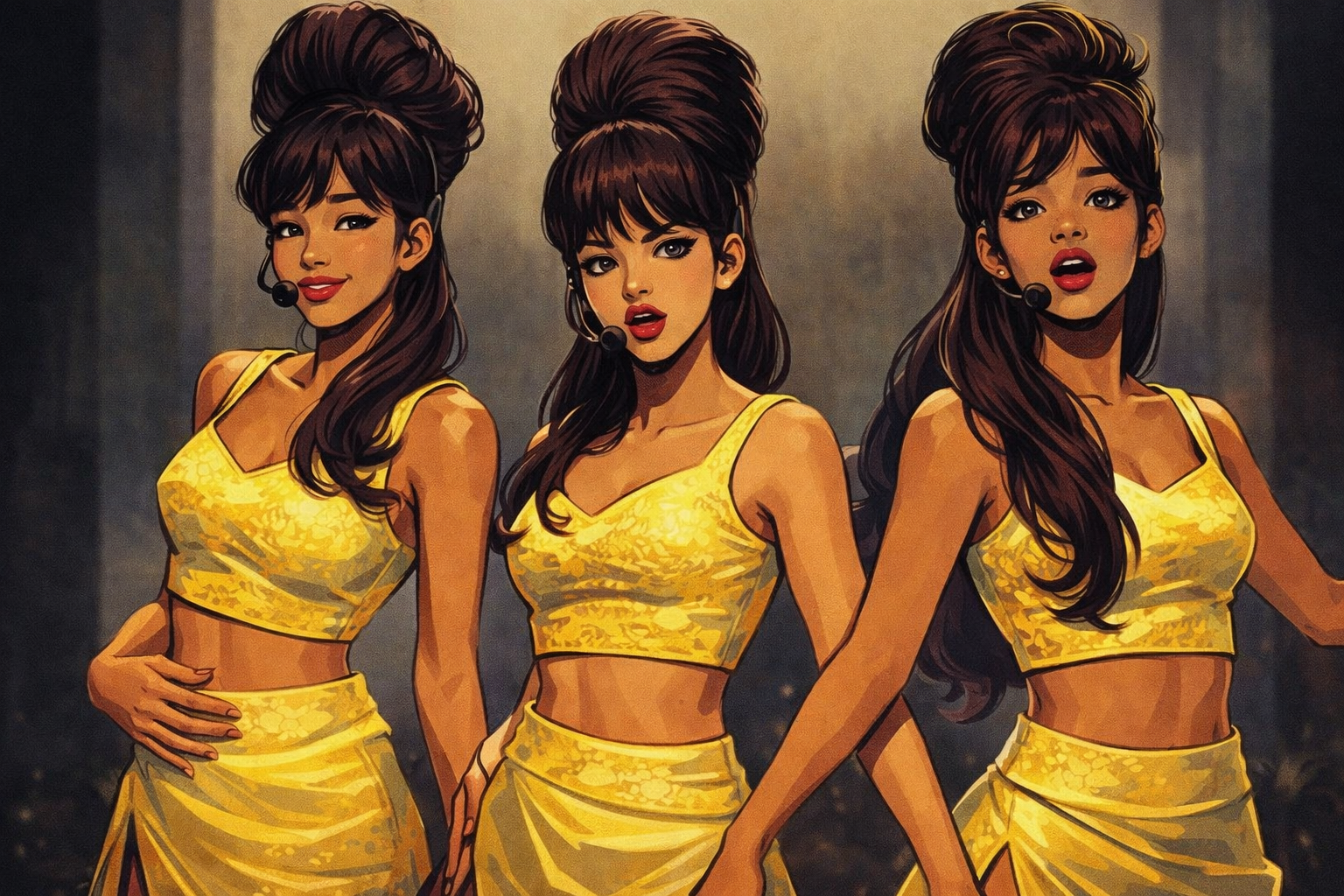 bedroom pop, dream pop, cloud rap, alt hip hop, 60s girl group pop, Brill Building pop, wall of sound, pop soul, rnb, doo wop influenced pop, intimate powerful lead female vocal, close mic breathy phrasing, urgent slightly raspy tone, soaring belted hooks, call and response lines, stacked sweet backing harmonies, sustained ooh ahh pads, dense layered guitars, piano and bass, warm 808 sub bass, iconic reverb drum intro, punchy kick and snare, handclaps, castanets, shakers, tambourine, woodblock, trap hats, syncopated hip hop groove, chopped drum samples, beatboxing accents, record scratching cuts, glitch effects, stutter edits, micro edits, vocal chops, shimmering synth pads, dreamy haze, cinematic strings and brass swells, wide stereo imaging, glossy compression, crisp transients, ear candy fills, short delays, roomy plate reverb, romantic yearning, triumphant, danceable, cathartic