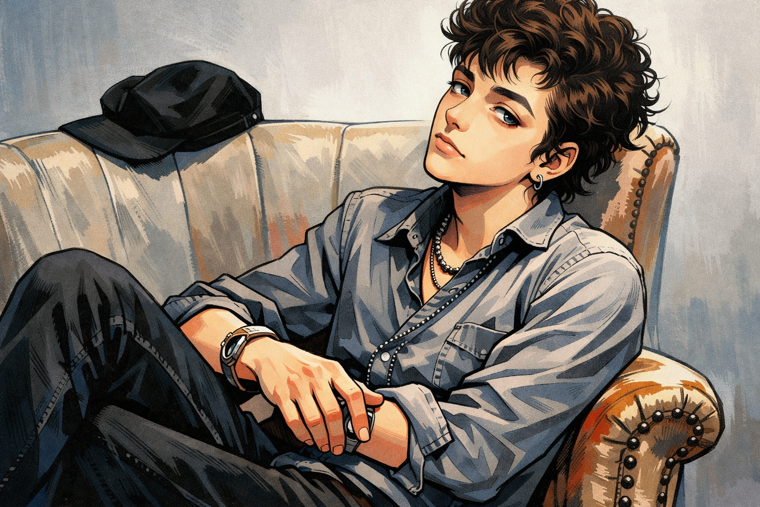 bedroom pop, dream pop haze, cloud rap undertones, alt hip hop singer songwriter core, intimate close mic lead vocal, slightly nasal tone, conversational phrasing, minimal vibrato, soft breathy doubles, gentle falsetto touches, acoustic guitar strum bed, clean electric guitar shimmer, warm synth pads, airy keys, subtle harmonica accents, punchy 808 sub, tight kick snare, swung hat patterns, beatboxing layers as rhythmic texture, record scratching ear candy, glitch stutters, chopped vocal one shots, sidechain pump, glossy micro pop polish, bright saturated top end, tight mono low end, wide chorus spread, tape flutter texture, reverb washed ambience, dreamy late night calm, earnest reflective glow, singalong hookiness, calm insistent momentum
