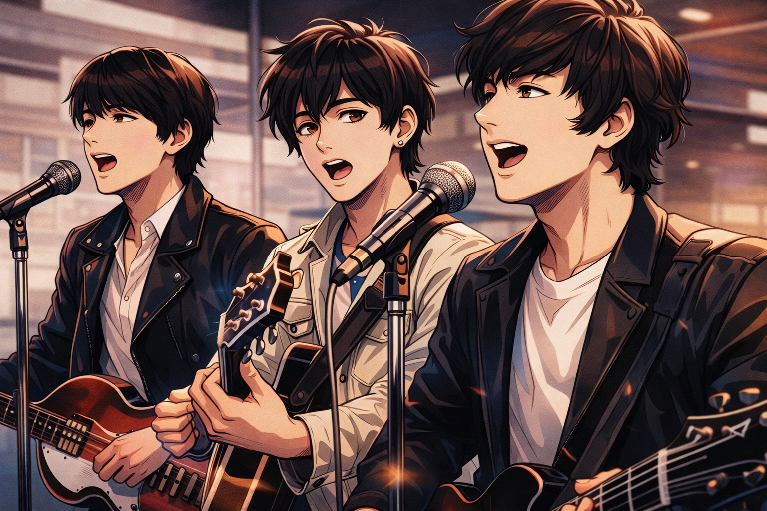 bedroom pop, dream pop, cloud rap, alt hip hop, polished diy indie pop, micro edited hook forward arrangements, major key pop rock bounce, merseybeat inspired beat music shimmer, british invasion pop energy, proto power pop lift, intimate close mic co lead vocals, unison to harmony switches, bright clean delivery, punchy phrasing, soft melodic rap adlibs, hooky call and response, beatboxing layers, record scratching accents, glitch effects, jangly electric rhythm guitar, crisp electric lead guitar, melodic bass guitar, punchy drum kit, tight backbeat, handclaps, clean modern pop low end, airy high frequencies, subtle saturation, wide stereo imaging, restrained dynamics, sunny exuberant youthful danceable feel good urgency
