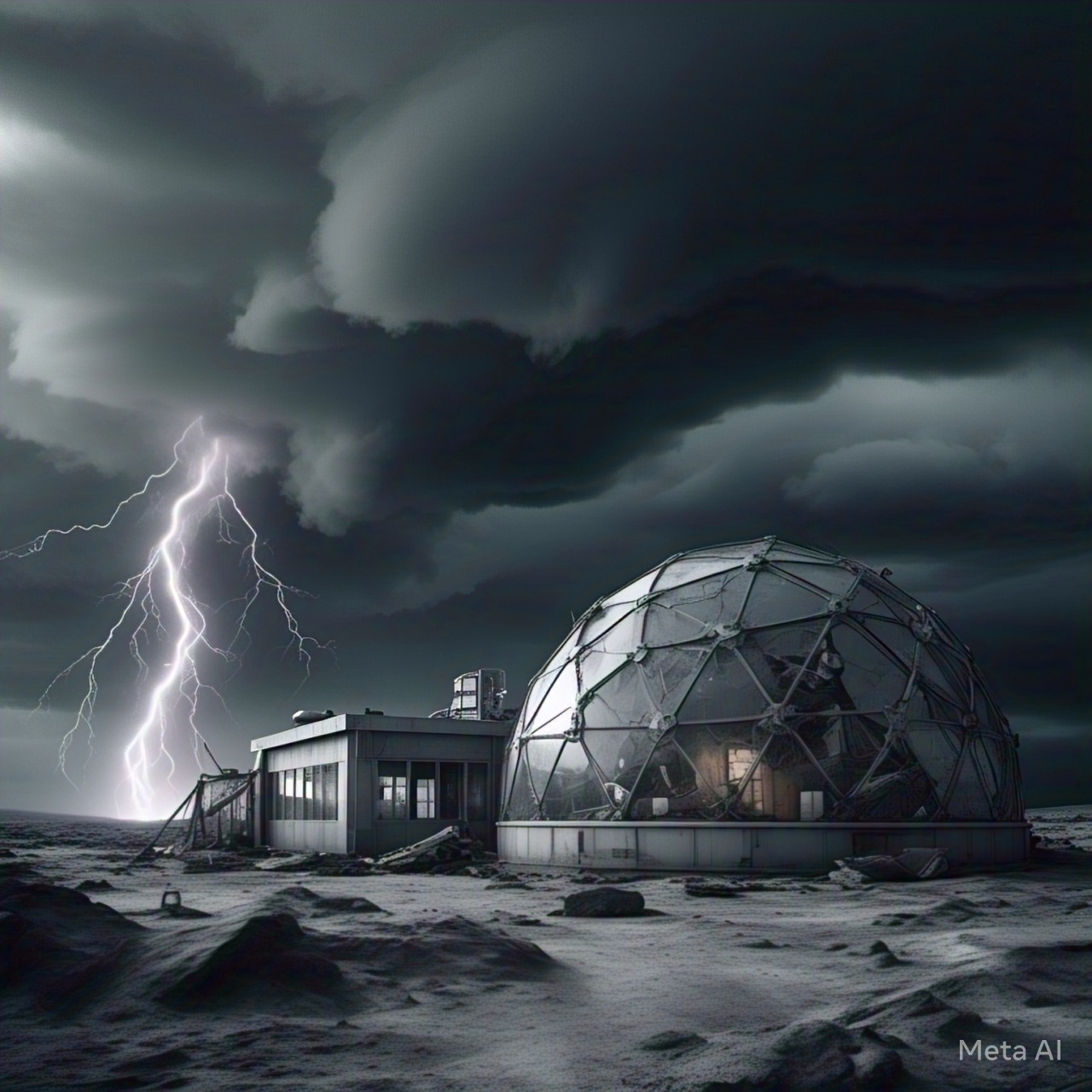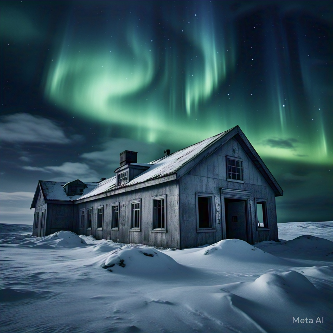 Ominous Soundscape: Abandoned Arctic Research Laboratory (Creeping Darkness, Howling Storms, Distressed Machinery, blend of haunting ambient textures and pulsing, industrial-tinged basslines