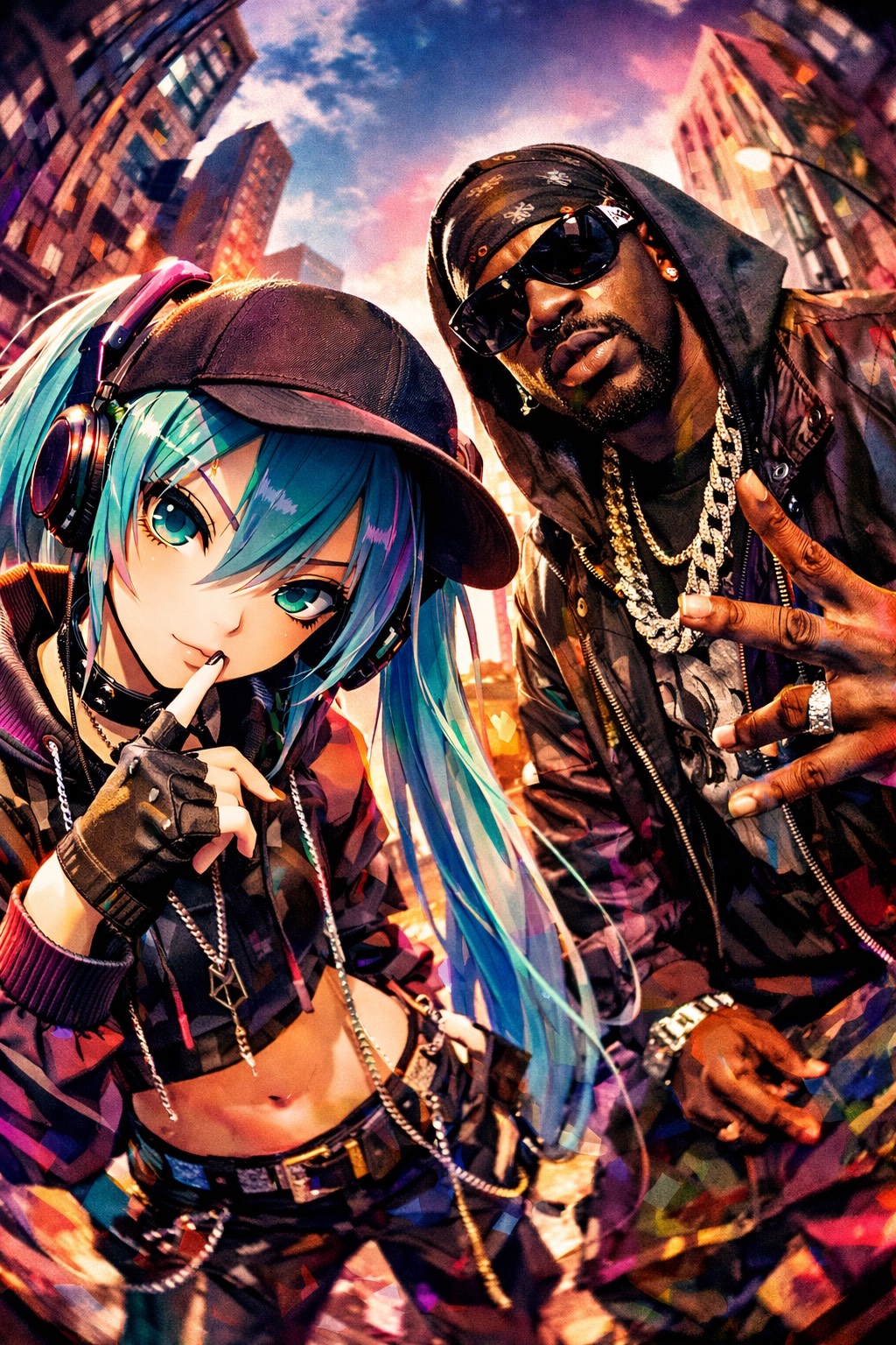 Fast, Rap, Miku, sweet female voice, Vocaloid, male rapper, flow, duet, Heavy, K-pop, trap, bass, beat, Phonk sound, sweet female voice, vocaloid, vocaloid, ‑Monotonous, ‑future bass, ‑ethnic, ‑culuture, ‑cute, ‑noise