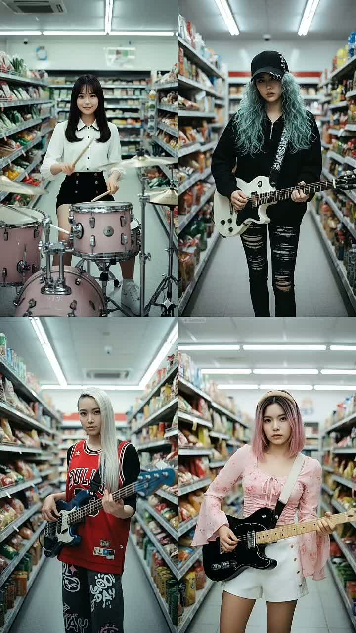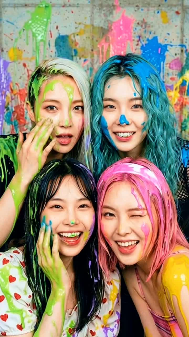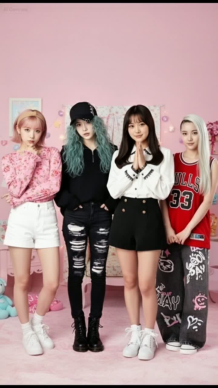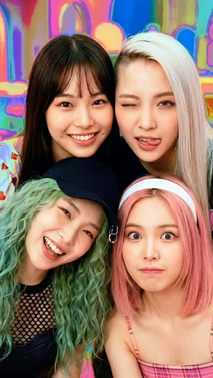 Fastcore pop-punk bursts in with intricate, math-rock style guitars and relentless, high-tempo galloping punk-rock drumming, Four distinct female K-pop vocals weave dynamic harmonies, chanty unison hooks, and seamless line swaps, Production is polished, clean, mud free, and modern, keeping punk’s raw, electrifying drive, ‑muddy mixes, ‑muddy, ‑generic pop punk chord progressions